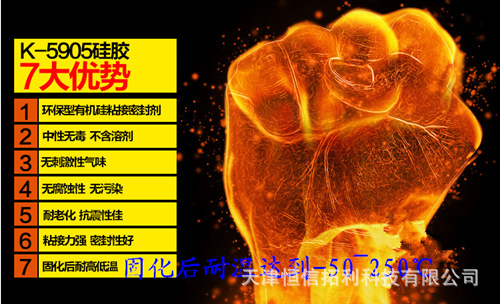 K-5905(快干型有机硅密封胶)系列是一种可进行快速粘接的有机硅胶粘剂,绝缘性优、粘接性好,防潮、抗震、耐电晕、抗漏电。胶料对金属和大多数塑料的粘接性良好,固化后具有卓越的抗冷热交变性能(-50~250℃)。