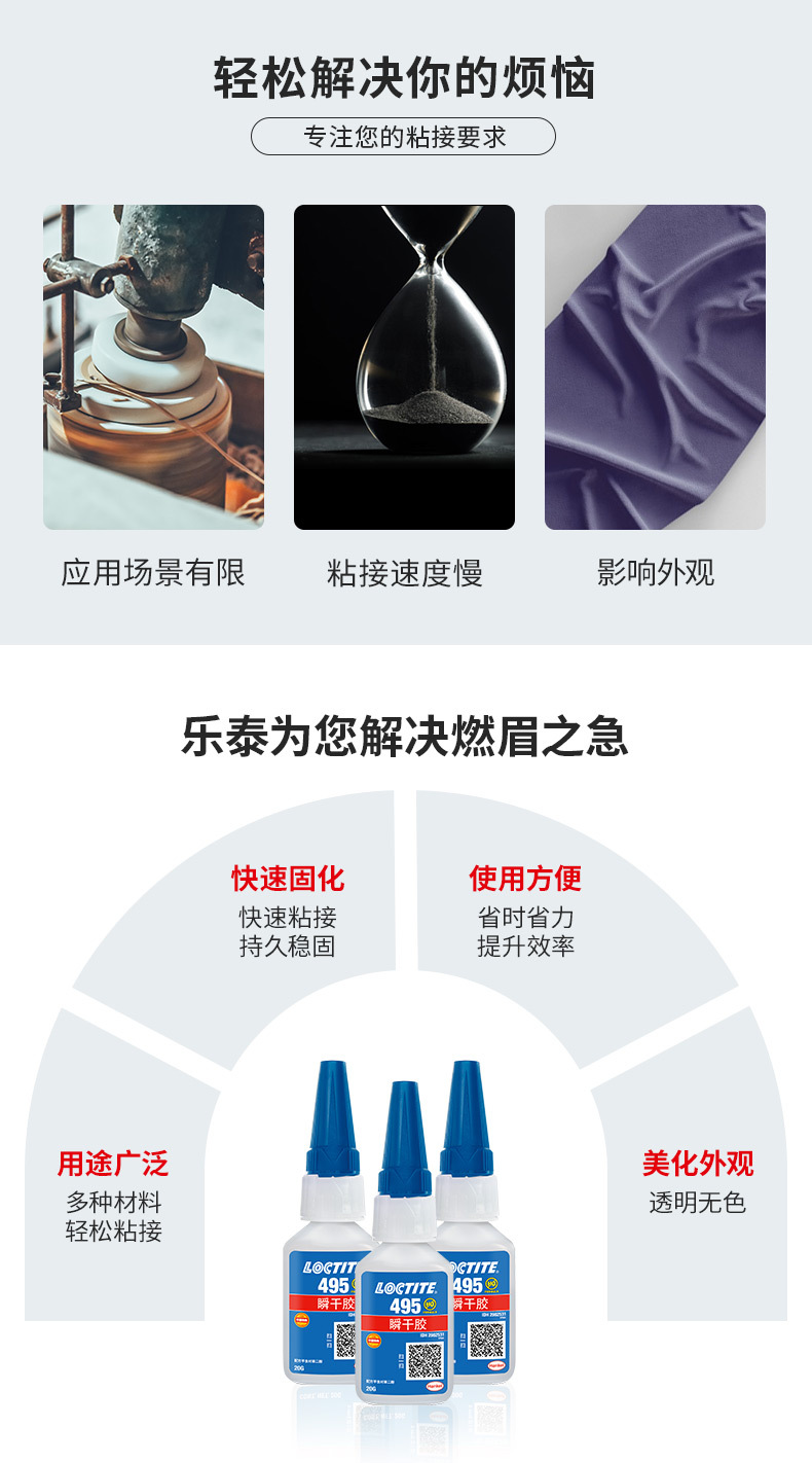 LOCTITE 빠른 건조 접착제 495 순간 접착제 ABS 플라스틱 PVC 고무 속건성 접착제 금속 접착제