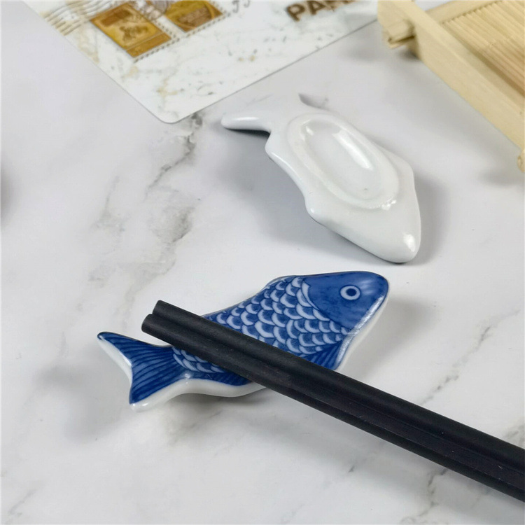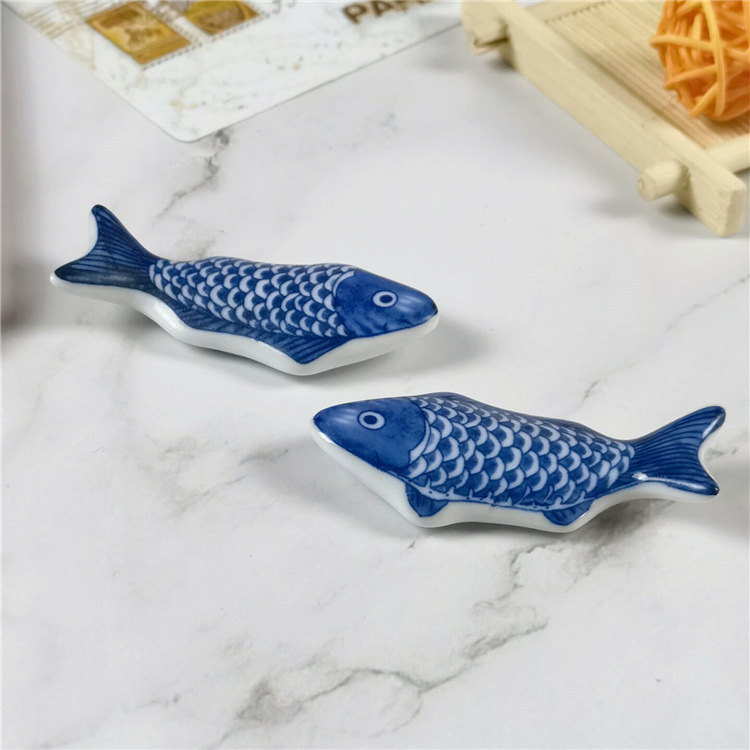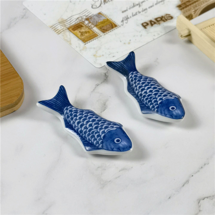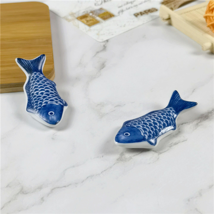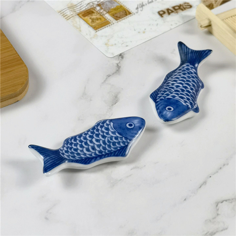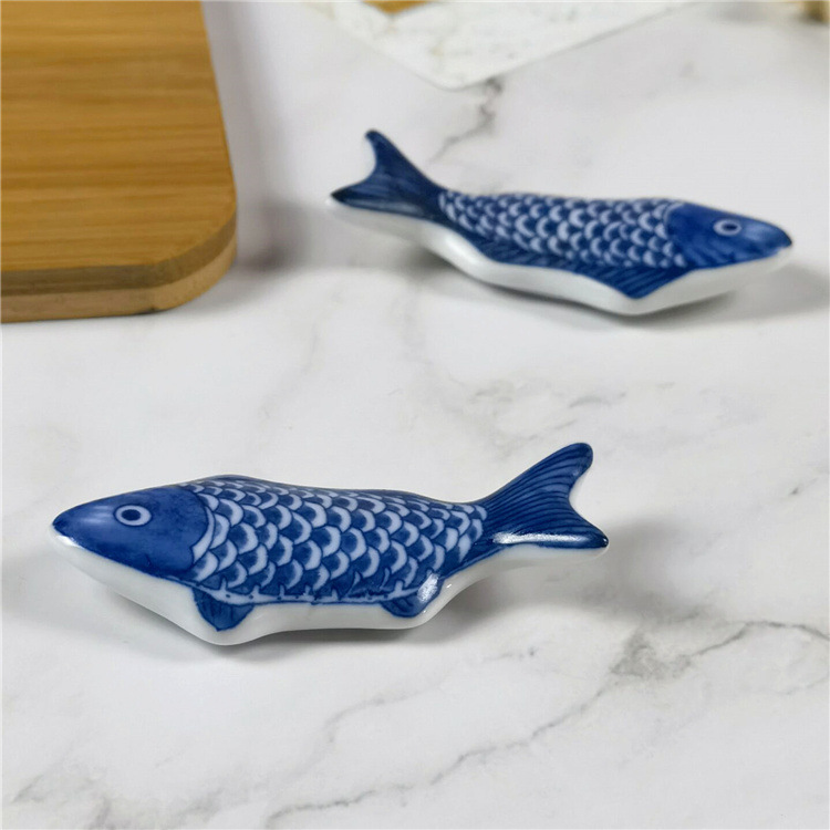 세라믹 블루와 화이트 작은 물고기 가정용 젓가락 홀더 젓가락 홀더 창조적 인 일본 젓가락 홀더 zakka 레스토랑 호텔 식기 젓가락 베개