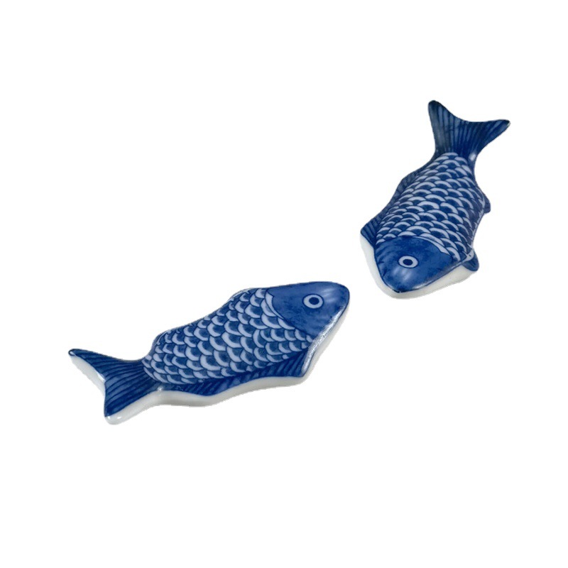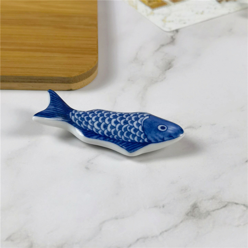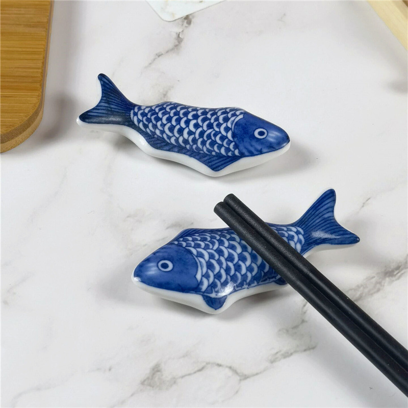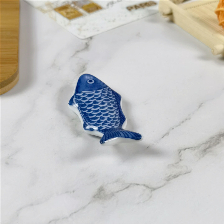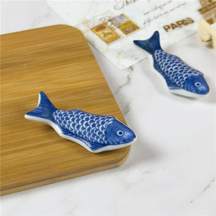 세라믹 블루와 화이트 작은 물고기 가정용 젓가락 홀더 젓가락 홀더 창조적 인 일본 젓가락 홀더 zakka 레스토랑 호텔 식기 젓가락 베개