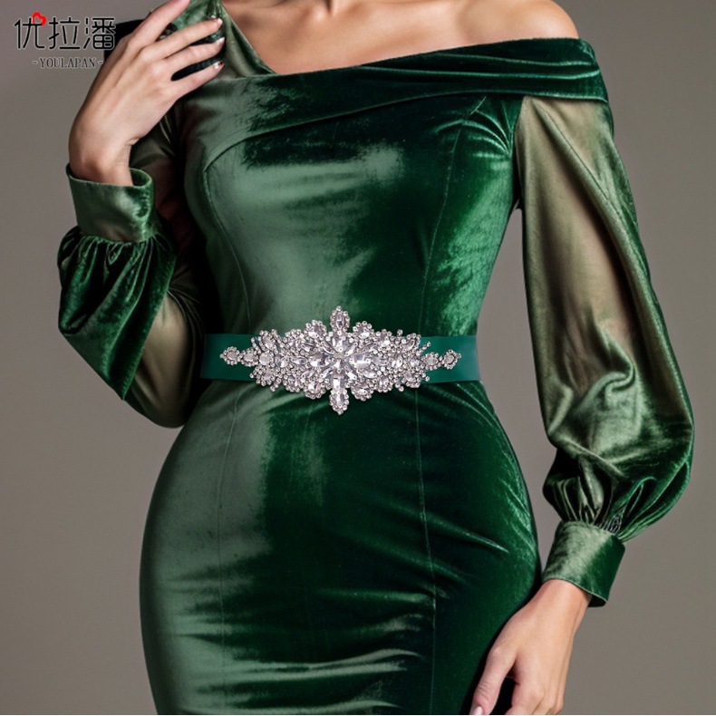 Yulapan 크로스 보더 핫 웨딩 벨트 럭셔리 모조 다이아몬드 원피스 허리 씰 절묘한 플래시 다이아몬드 대외 무역 벨트 S01
