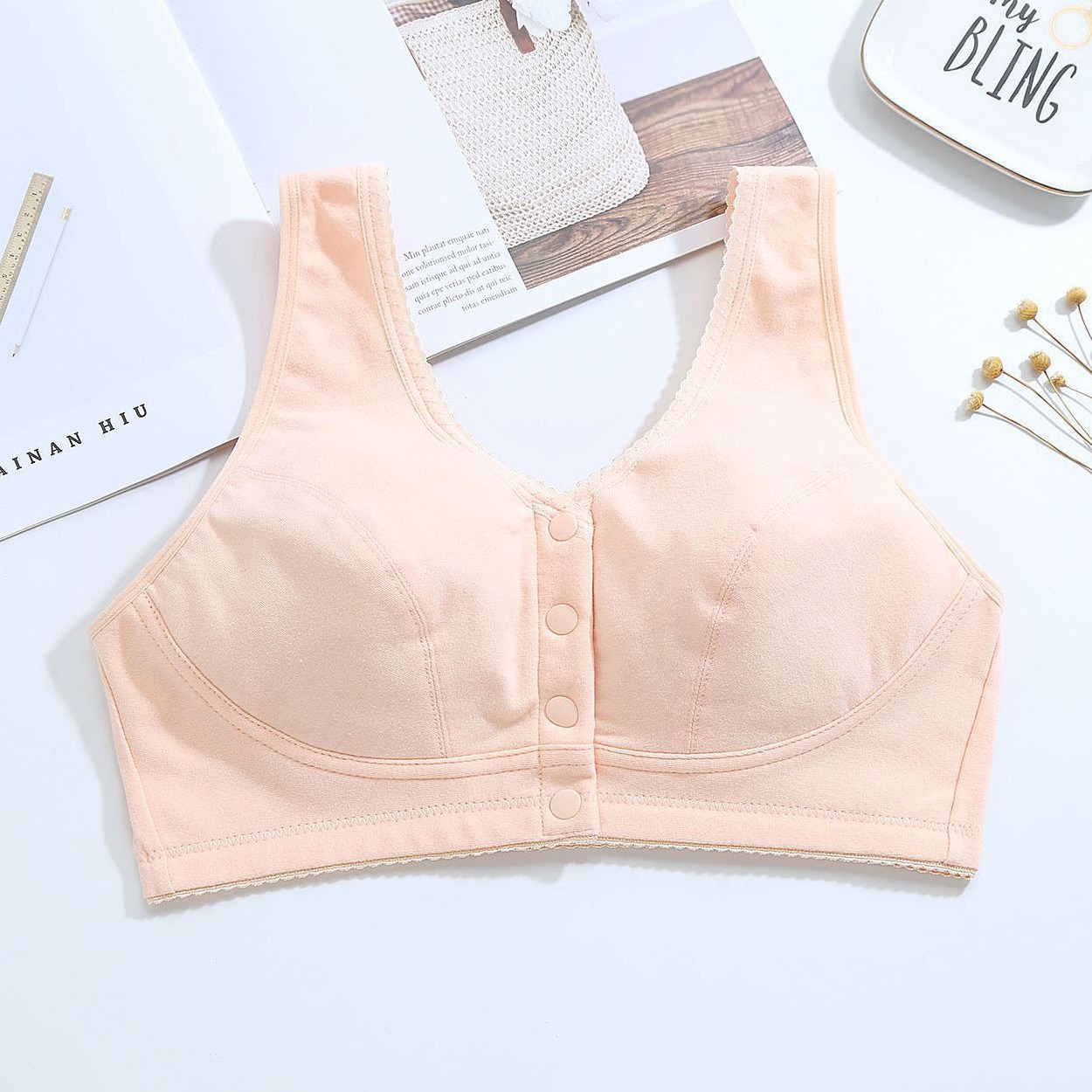 特别提示:此款前扣的背心尺码偏小一些,平时后扣的如果穿36(80),此款建议选择38(85) 或者40(90)。