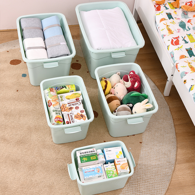 잡화 용 바퀴가 달린 가정용 휴대용 보관함 플라스틱 보관함 단색 뚜껑 장난감 보관함 의류 보관함