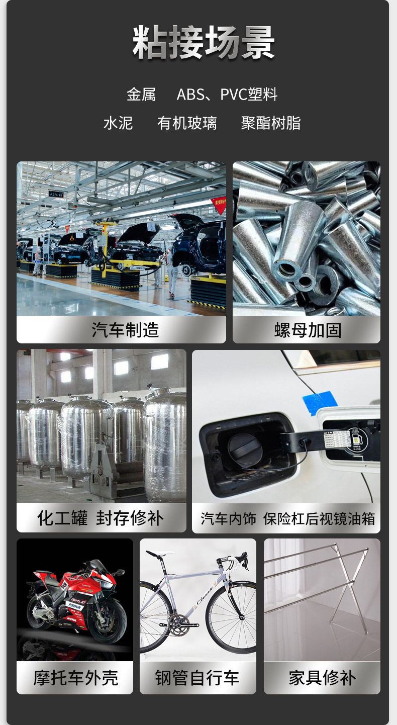 대체 용접, 접착 금속 시멘트, 목재, ABS 재료, PVC 파이프