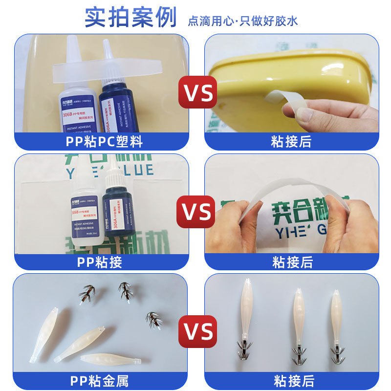 PP 속건성 접착제 PE 플라스틱 본딩 금속 나일론 ABS 강력한 투명 저백화 폴리프로필렌 PP 순간 접착제