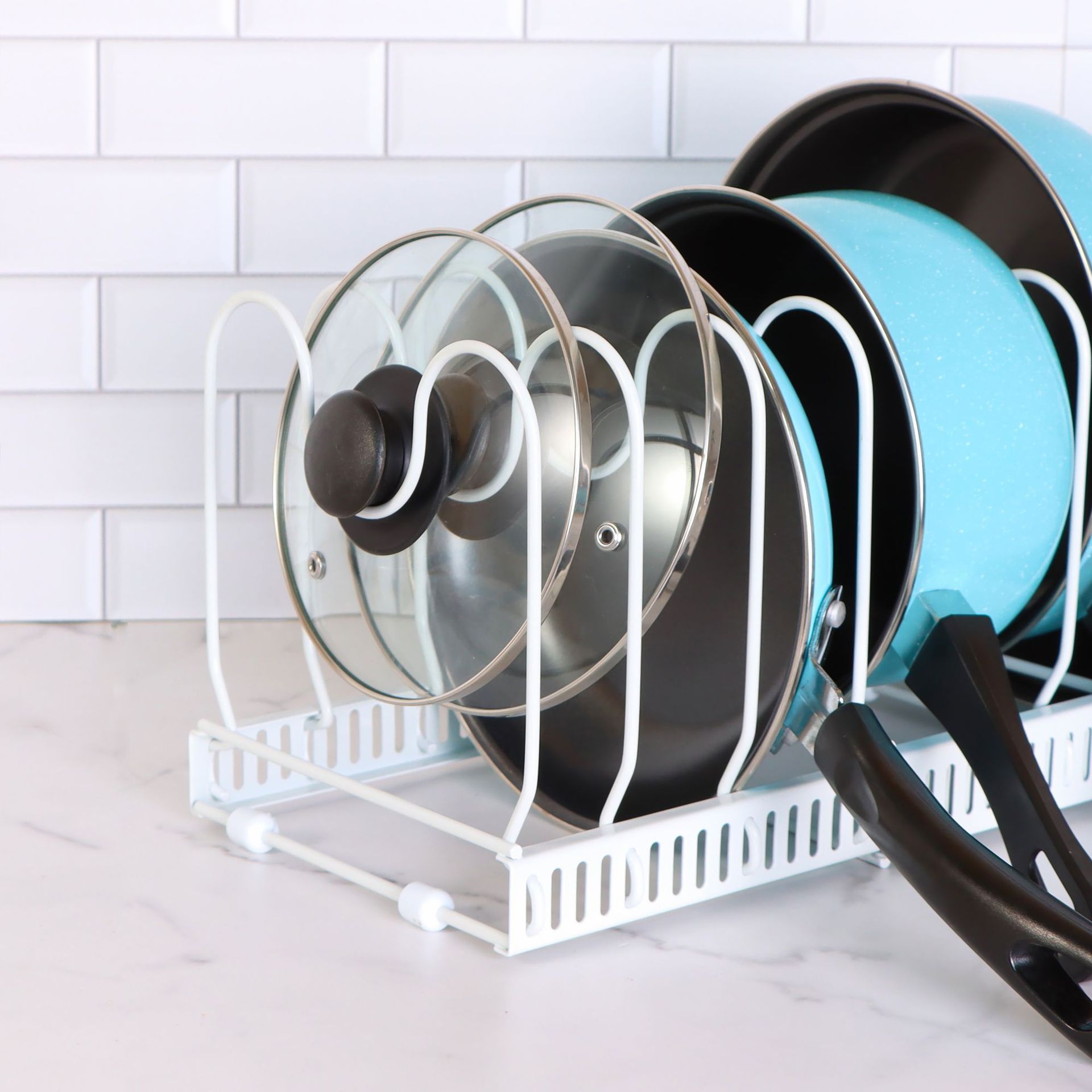 주방용품 철제 조리대 수납 선반, 신축성 있는 뚜껑 걸이, 조절 가능한 냄비 선반, 창의적인 수납