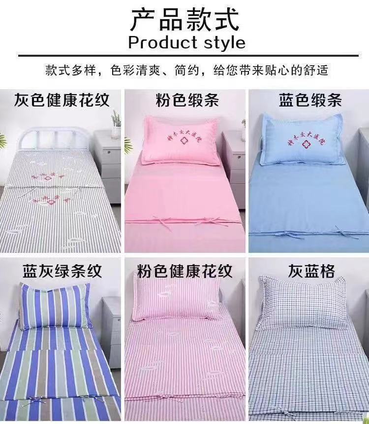 클리닉 병원 침대 시트 이불 커버 3 종 세트 파란색과 흰색 건강 관리 병원 침대 싱글 침대 용품 도매