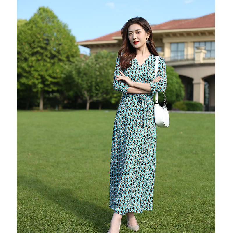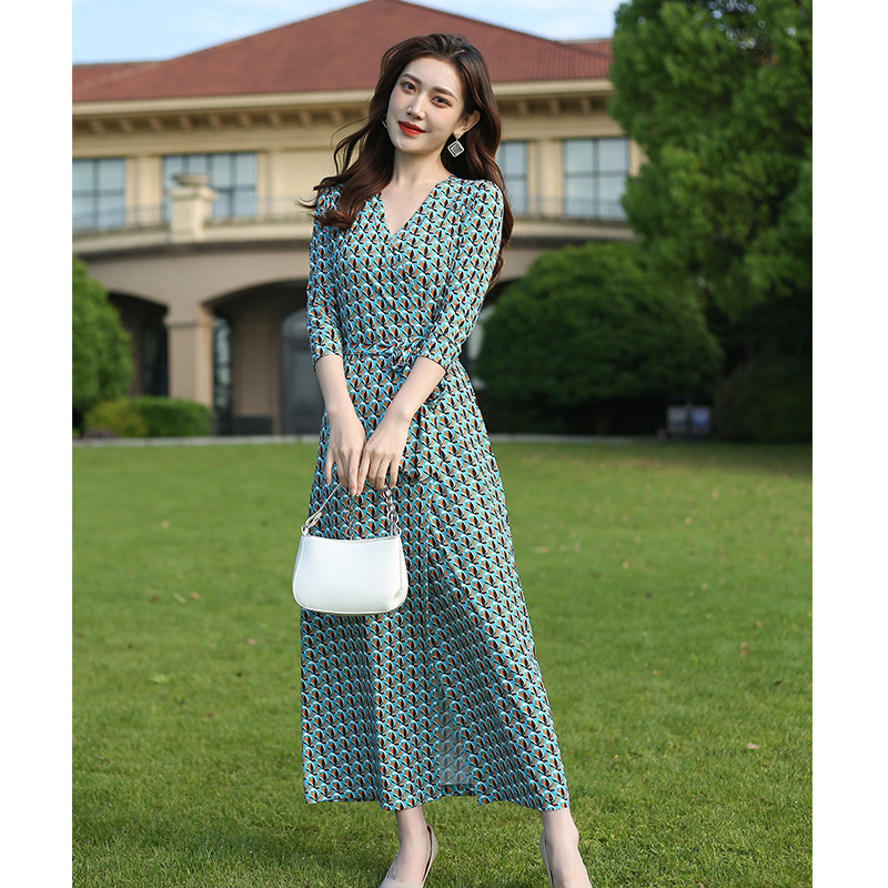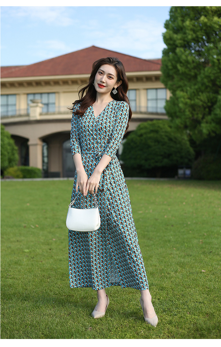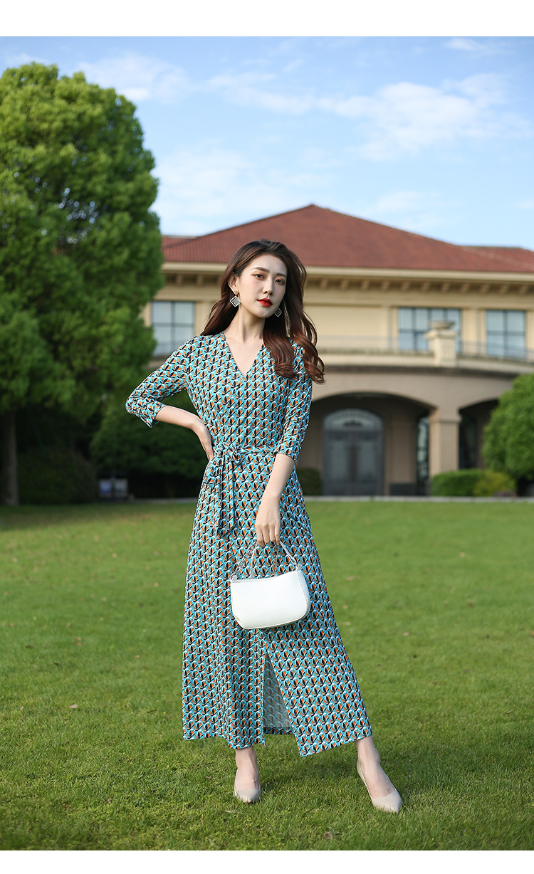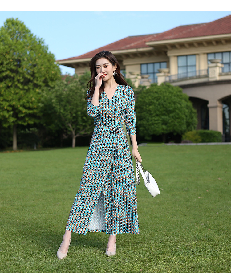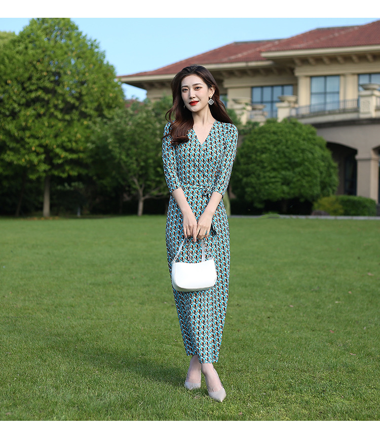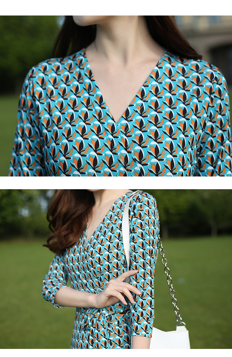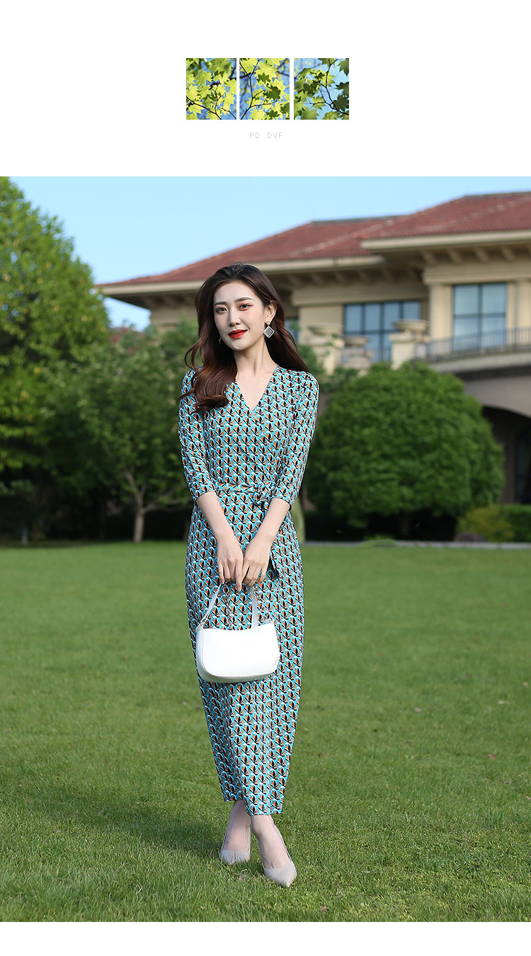 원피스 우아한 홀리데이 비치 원피스 랩 원피스 우아한 같은 방향 꽃 7 점 소매 원피스 PG DVF 새로운