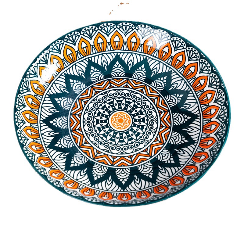 세라믹 플레이트 보헤미안 스타일 손으로 그린 언더 글레이즈 색상 8 인치 깊은 디스크 베이킹 플레이트 서양 접시 가정용 식기 도매