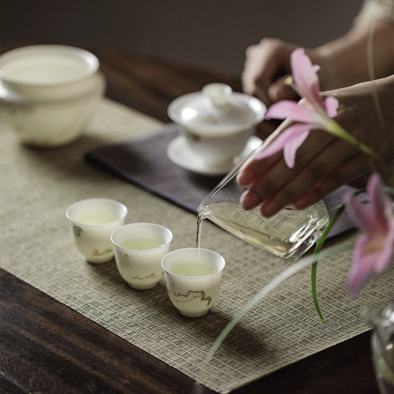 빔 각인 수제 3 캡 그릇 찻잔 화이트 도자기 싱글 얇은 세라믹 차 그릇 쿵푸 차 세트 세트