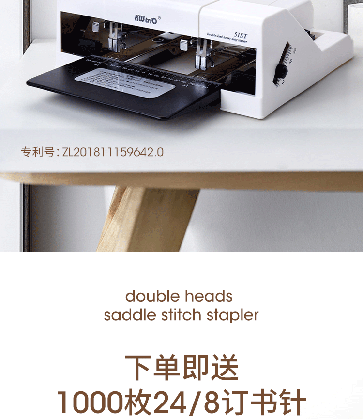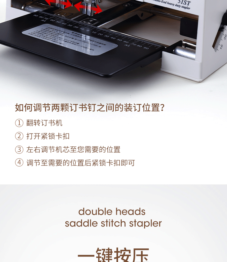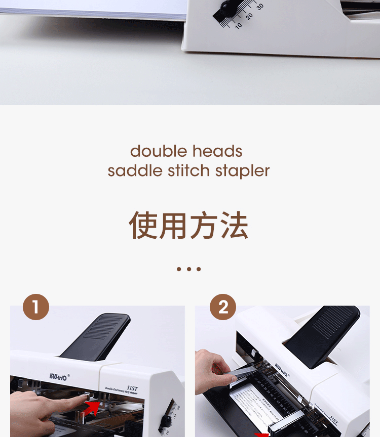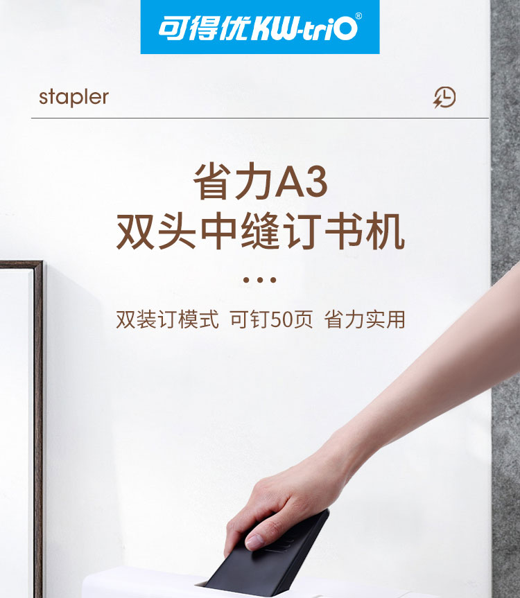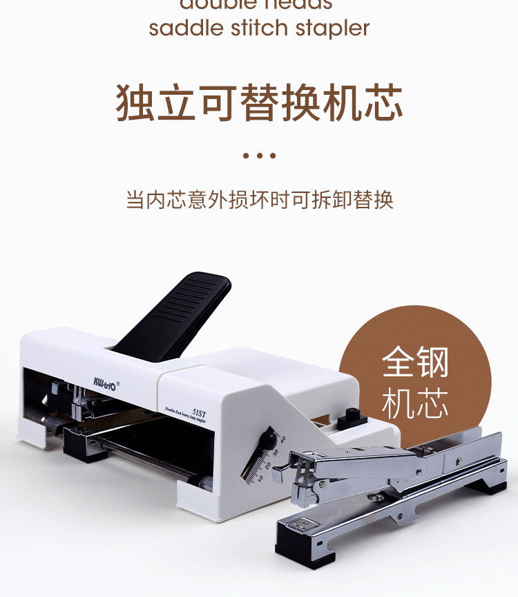 Kedeyou 51ST 중간 솔기 양두 스테이플러 긴 팔 더블 행 A4A3 사무실 더블 홀 50 페이지 노동 절약 연장