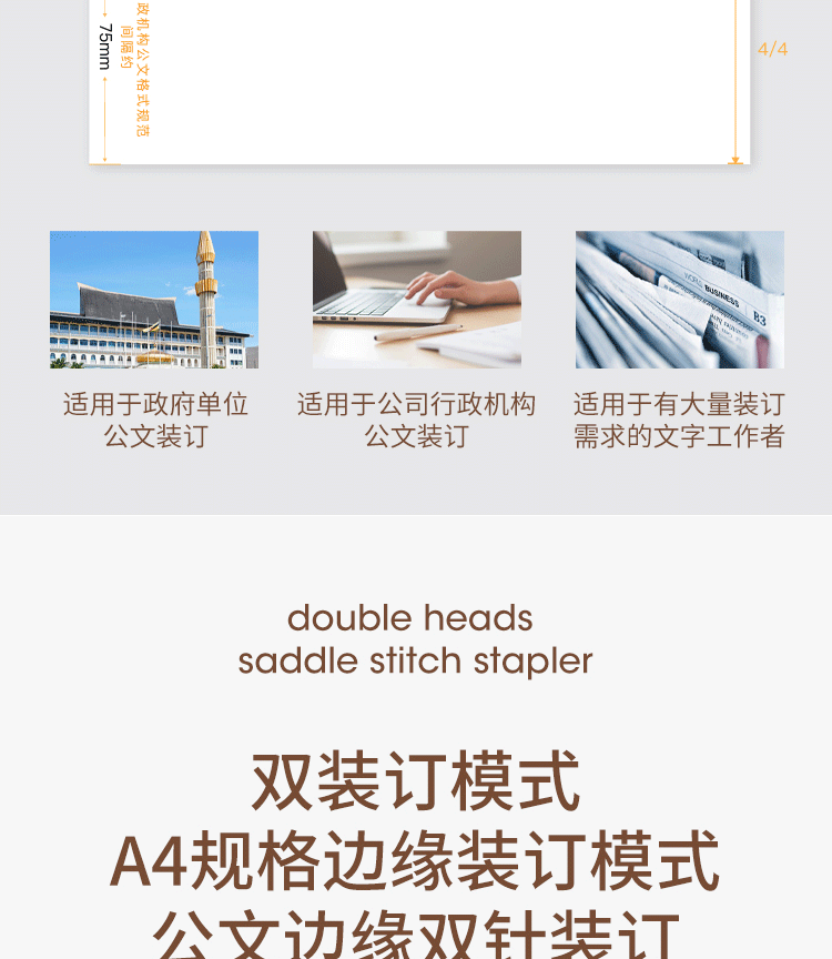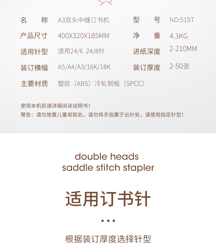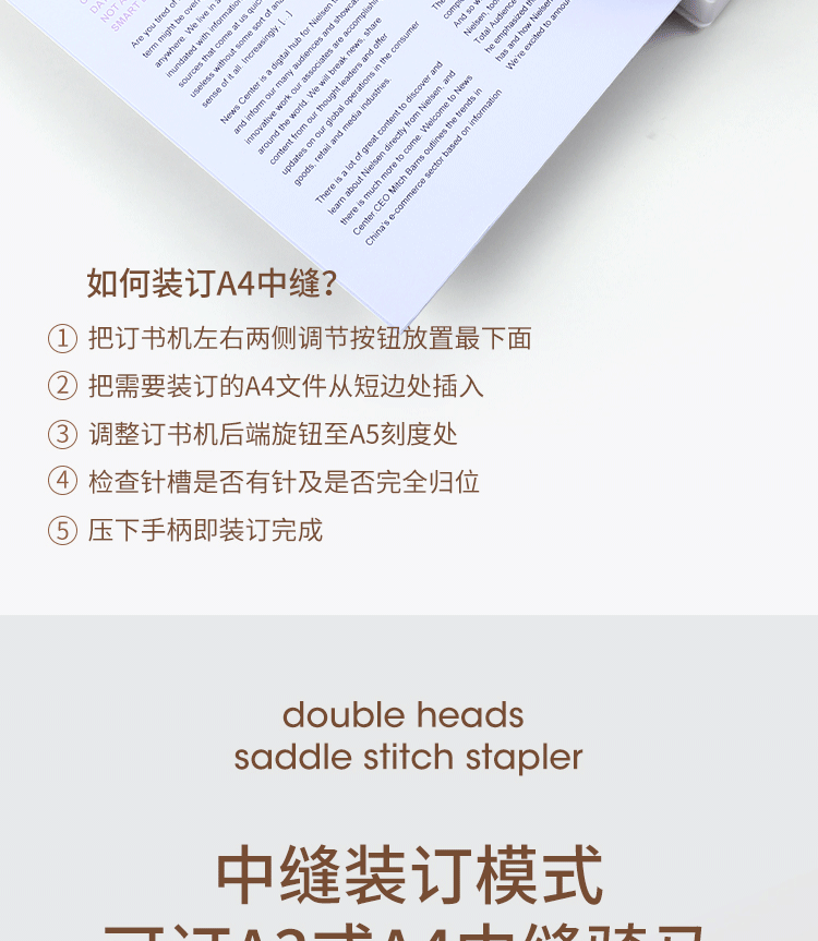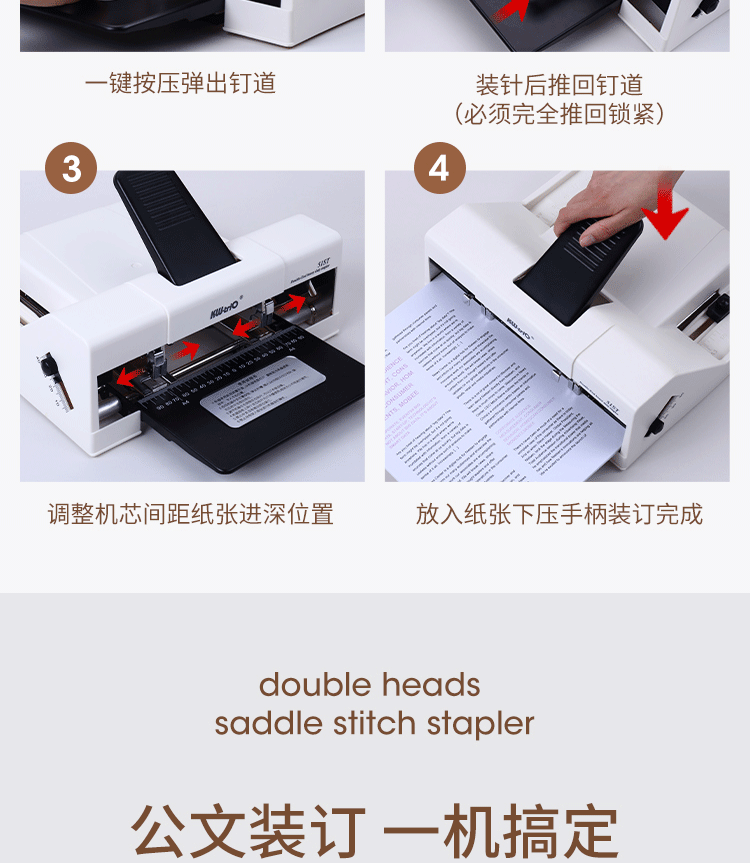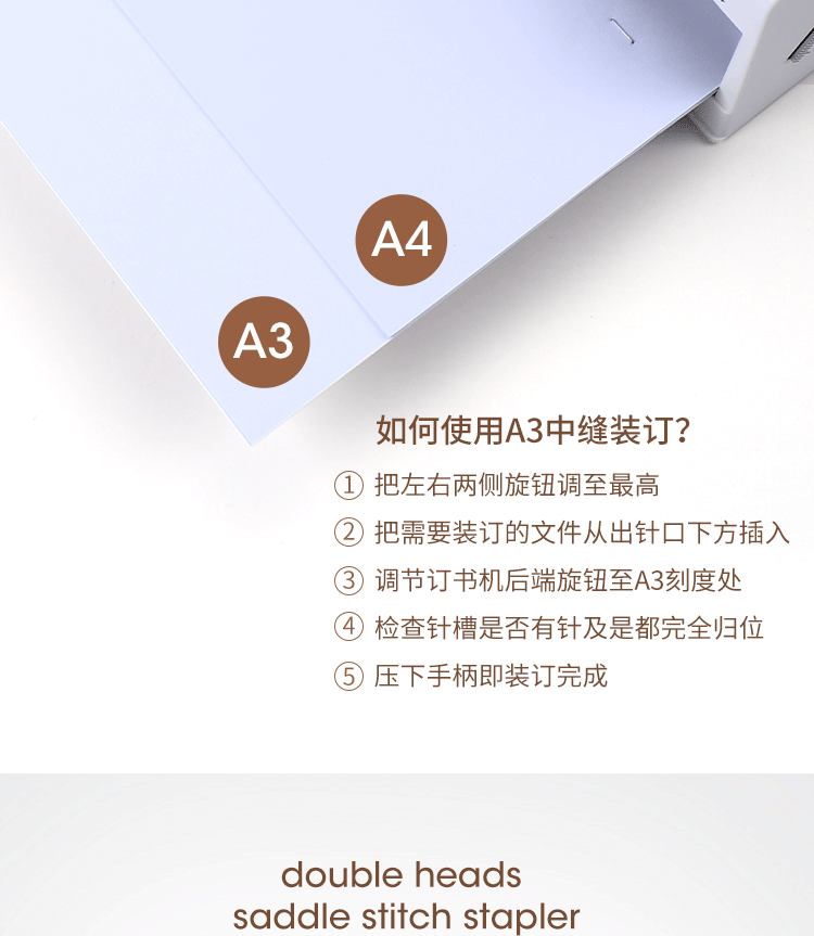 Kedeyou 51ST 중간 솔기 양두 스테이플러 긴 팔 더블 행 A4A3 사무실 더블 홀 50 페이지 노동 절약 연장