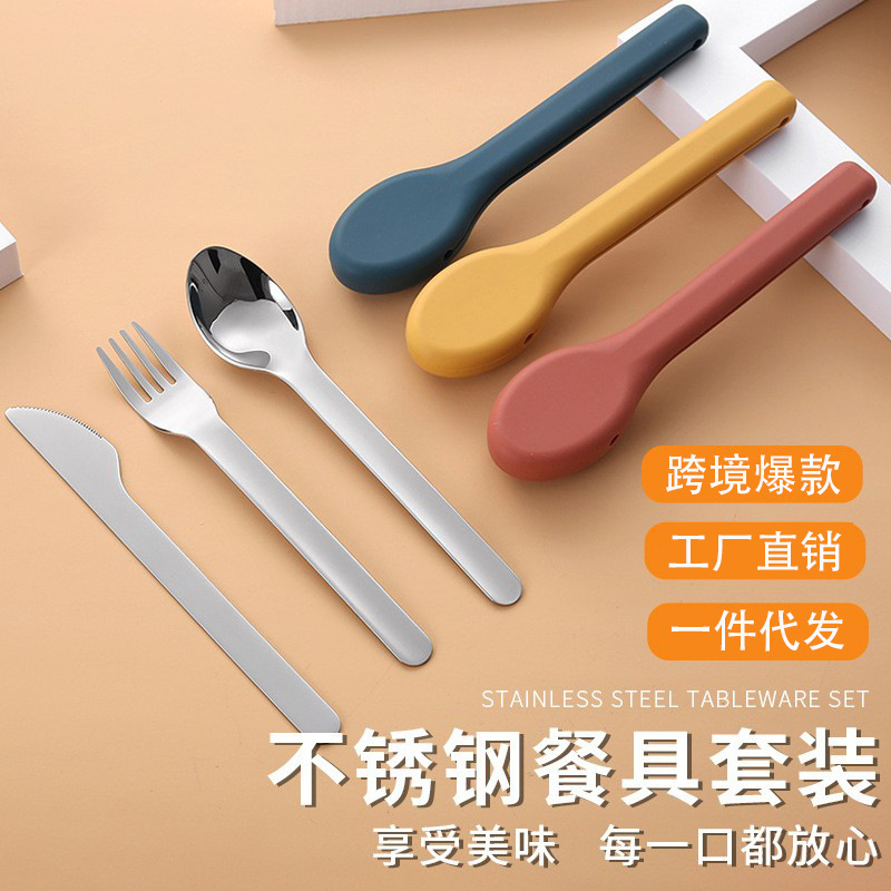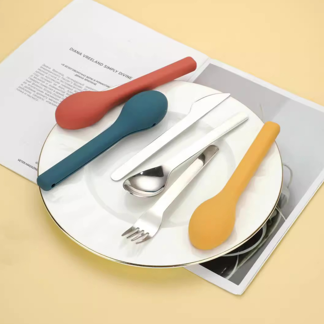 304 스테인레스 스틸 나이프, 포크, 스푼, 젓가락 세트, 야외 캠핑 휴대용 식기, 식품 등급 실리콘 세트, 서양 식기
