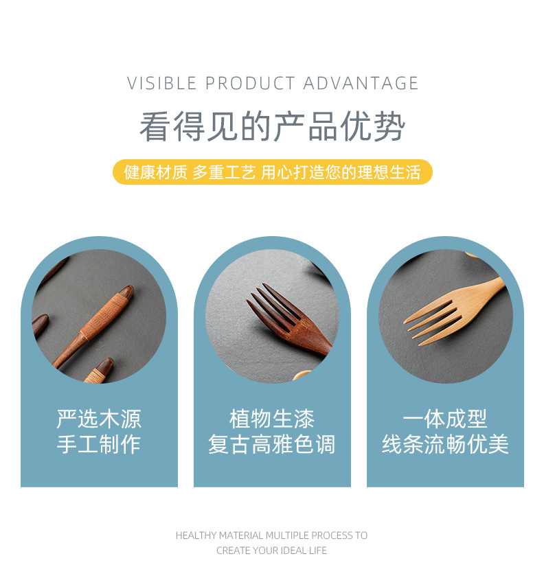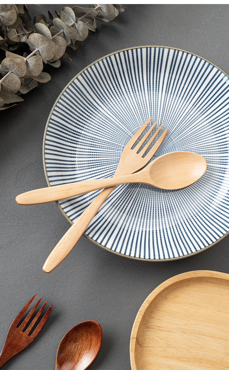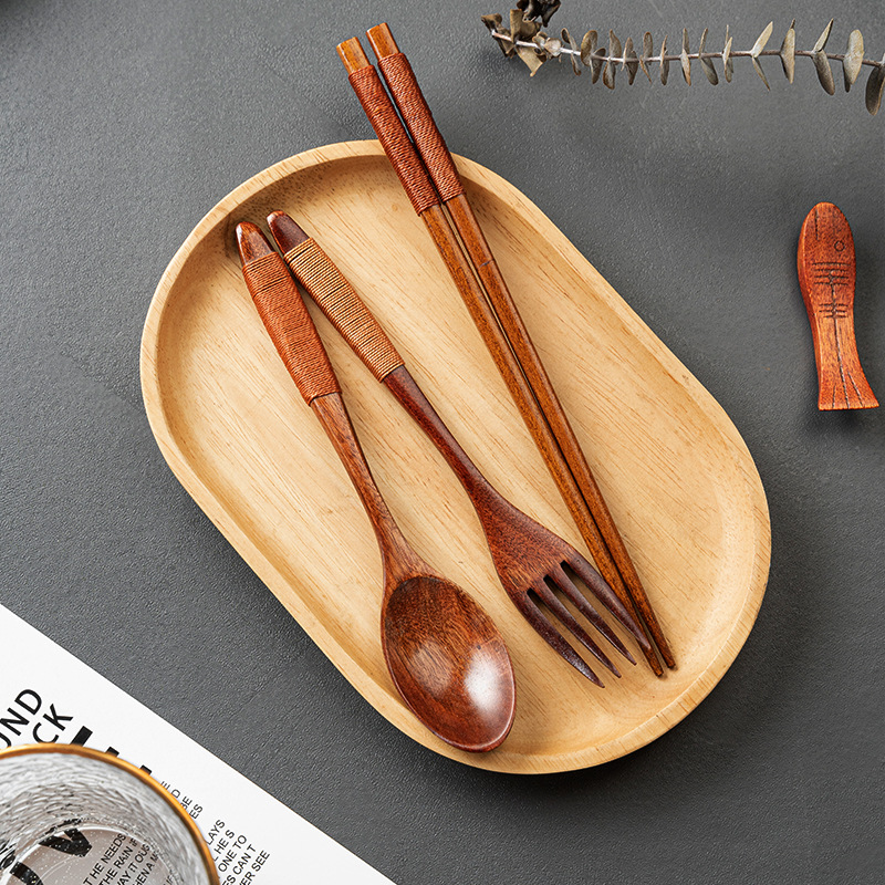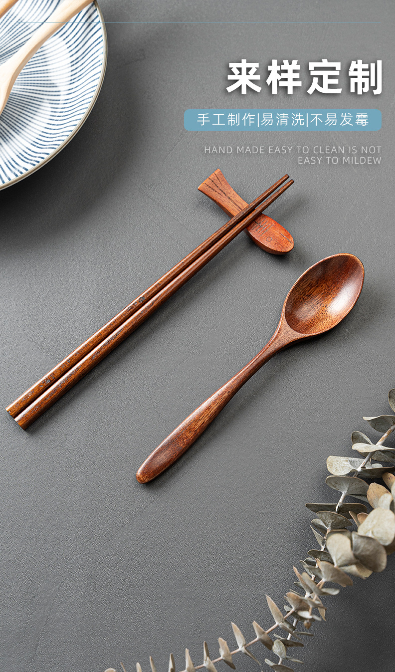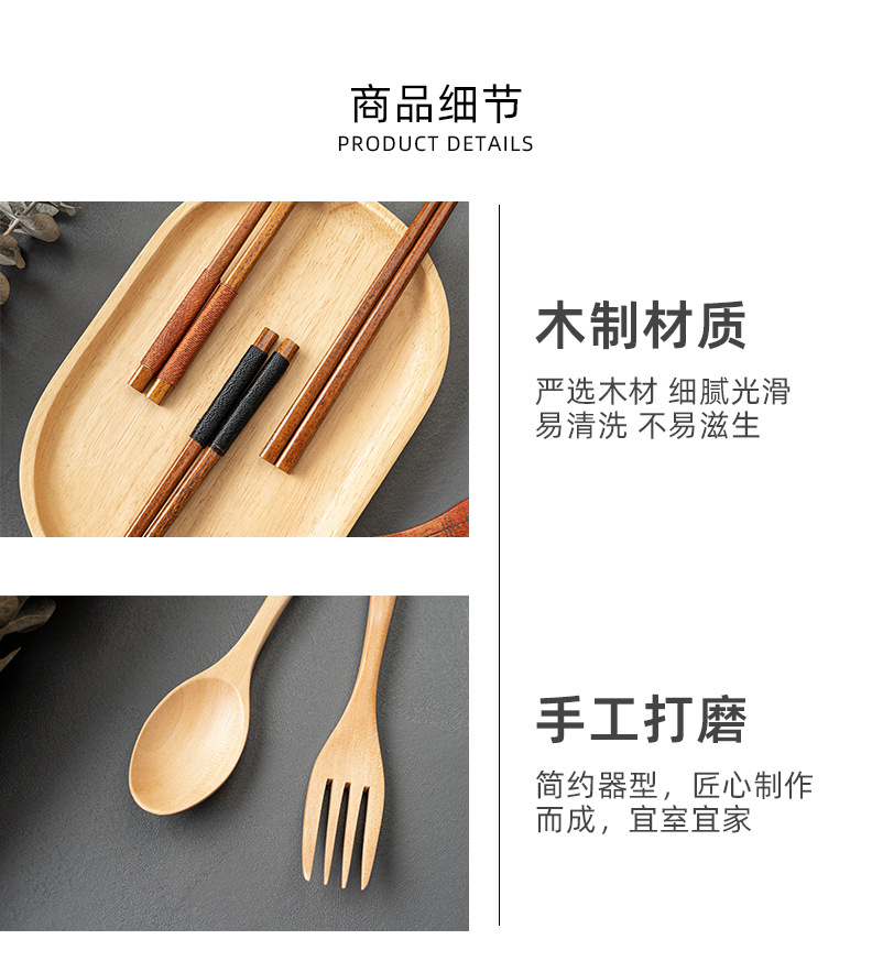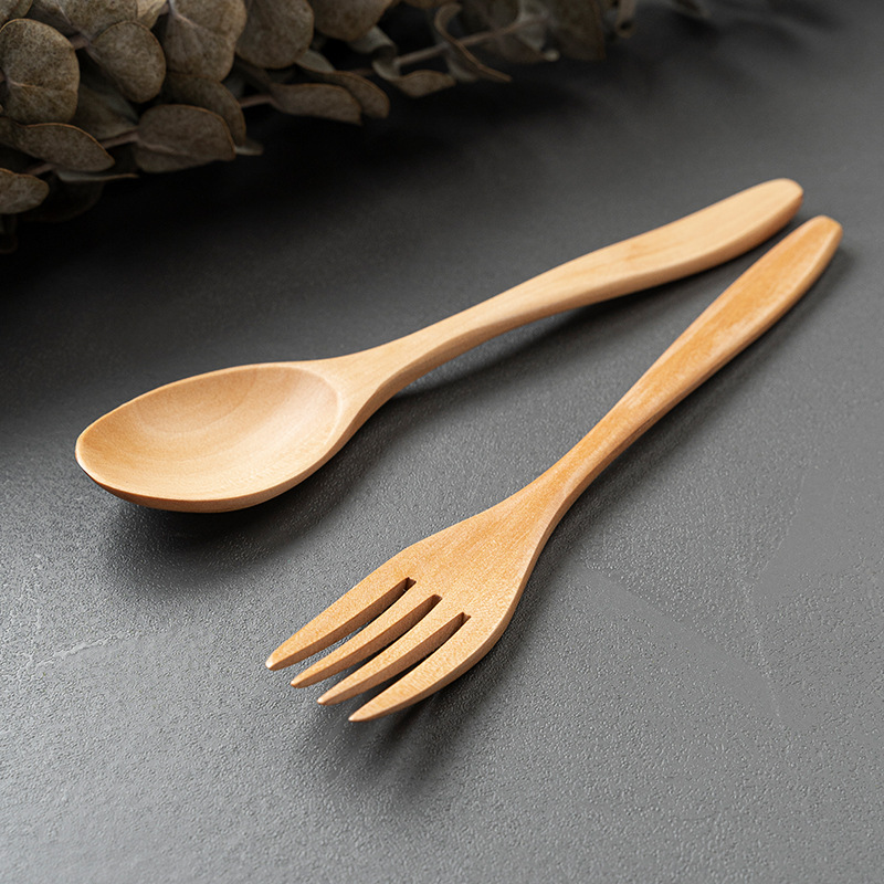 일본식 나무 식기 스푼 포크 젓가락 나무 숟가락 3 종 세트 긴 손잡이 커플 어린이 포크 스푼 젓가락 휴대용 식기