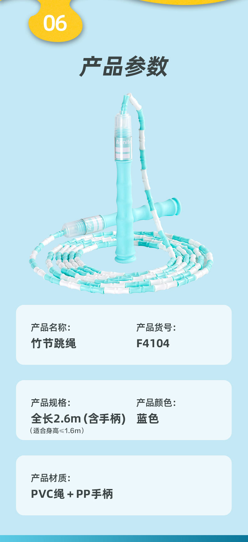 델리 F4104 아동 대나무 로프 스킵 조절 가능한 고등학교 입시 초등학생 로프 도매 스포츠 용품