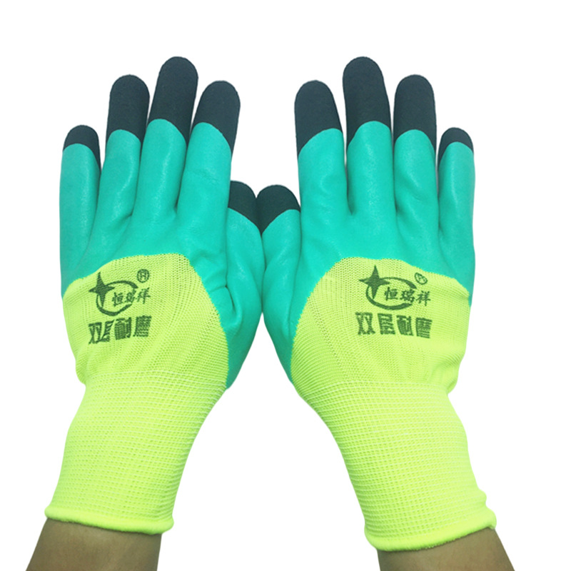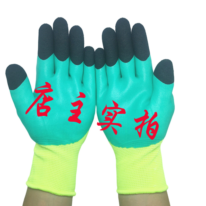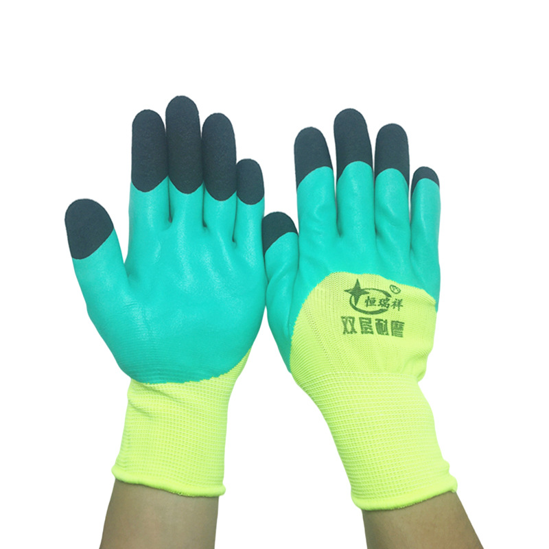 라텍스 통기성 킹 강화 핑거 폼 담근 노동 장갑 Hengruixiang 세미 행잉 통기성 더블 레이어 내마모성 장갑