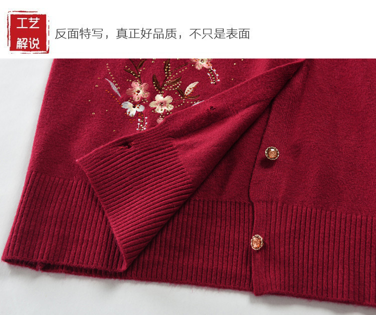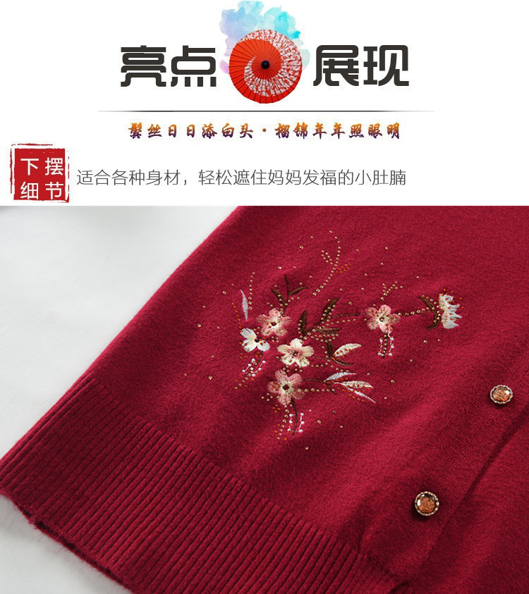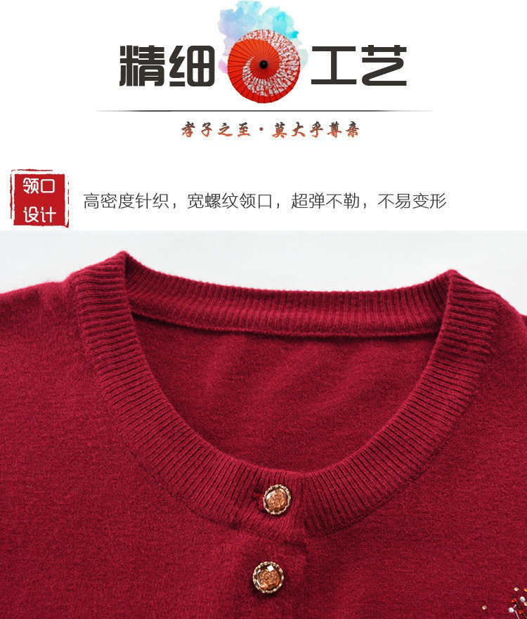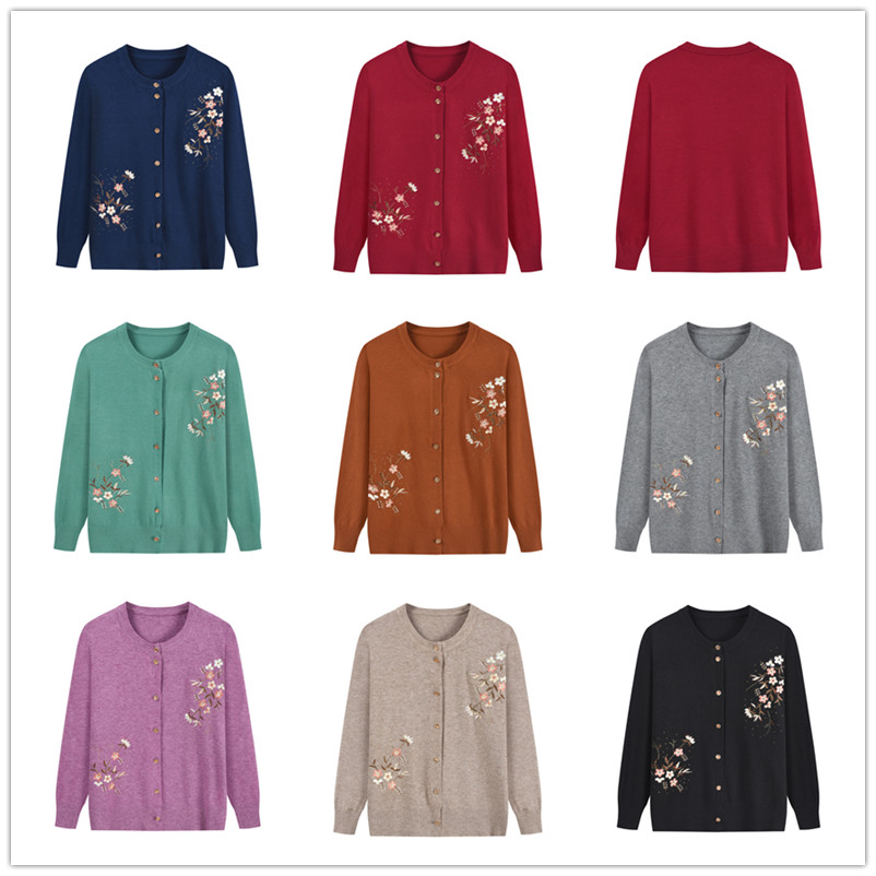 할머니 봄과 가을 얇은 스웨터 코트 중년과 노인의 아내 봄 카디건 여성 어머니 자수 니트 탑