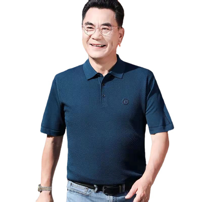 중년 및 노인 여름 티셔츠 옷깃 니트 남성용 아이스 실크 반팔 탑 플러스 사이즈 아빠의 반팔 탑