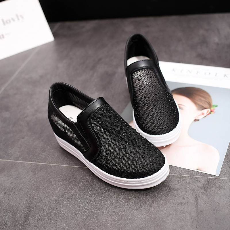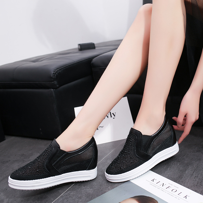 2022 봄과 여름 새로운 메쉬 스포츠 내부 높이 증가 여성 신발 통기성 로퍼 두꺼운 단독 게으른 패션 캐주얼 신발 트렌디