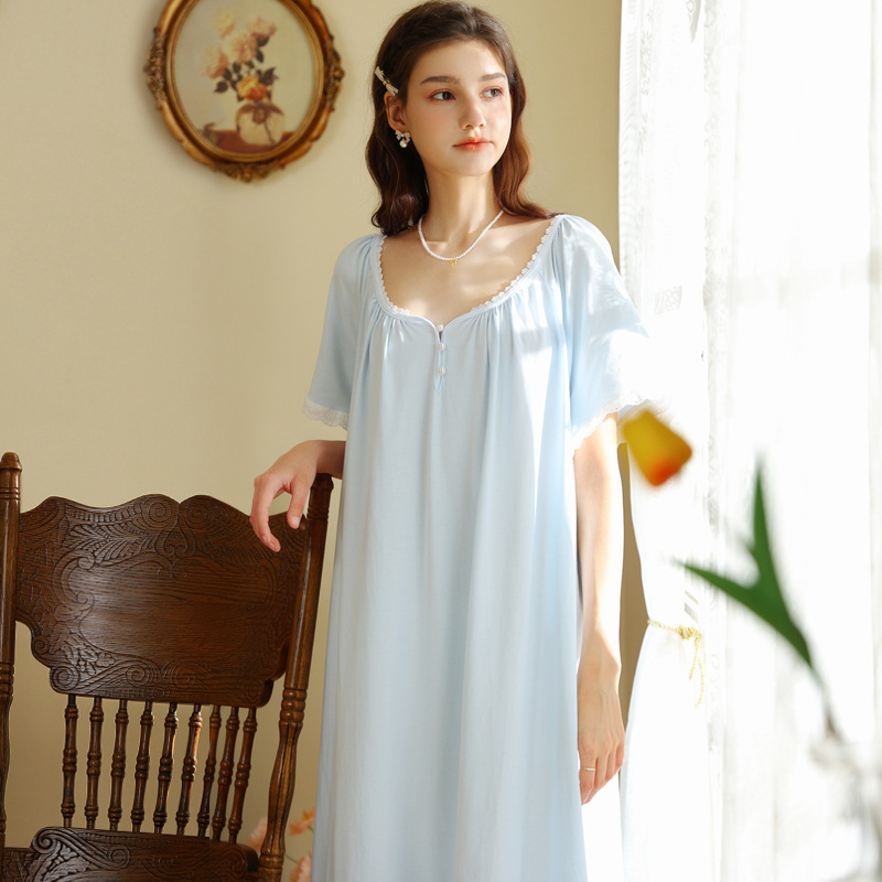 잠옷 여자의 여름 면 반팔 새로운 느슨한 긴 궁전 공주 프랑스 복고풍 얇은 임신 한 여자의 잠옷 가정 옷