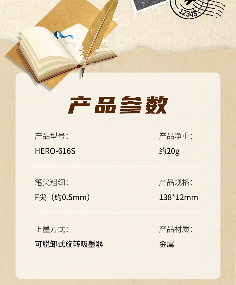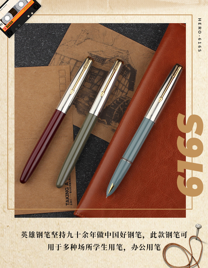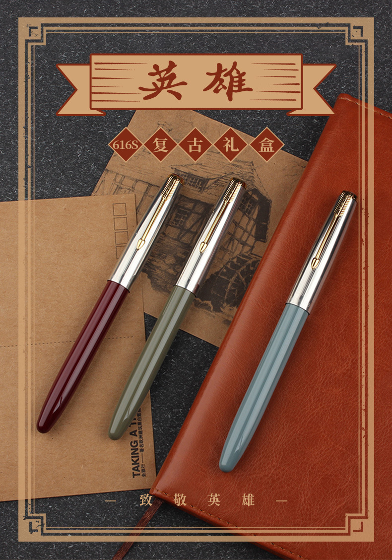 히어로 펜 616s 레트로 메탈 펜 기프트 박스 소아 초중학생 잉크 가방 만년필 단체 구입 문구 도매