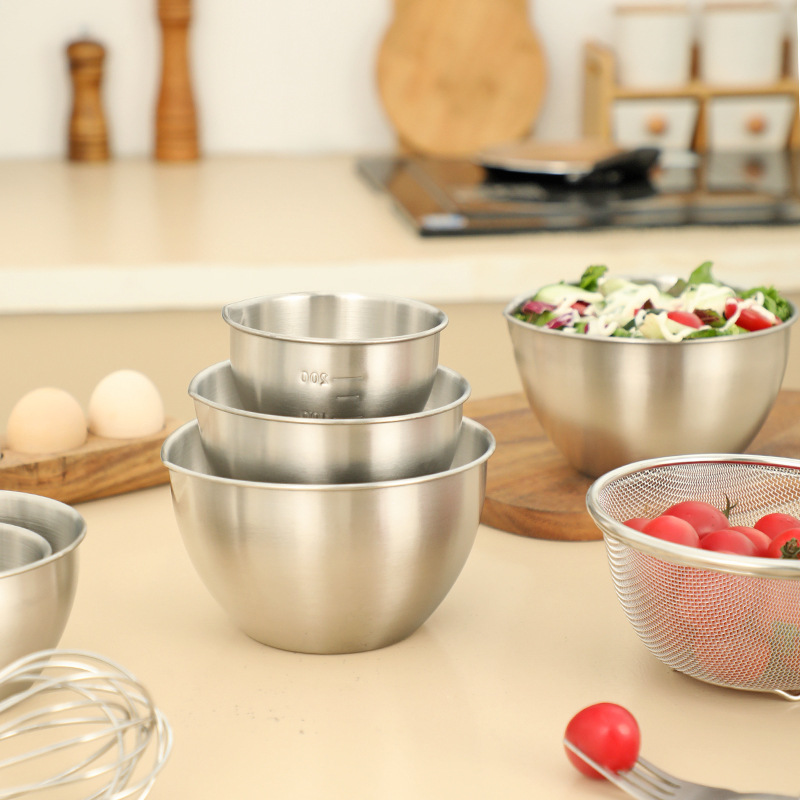 304 스테인레스 스틸 그릇 스케일 베이킹 그릇 가정용 식기 요리 그릇 과일 샐러드 그릇 단일 계란 그릇