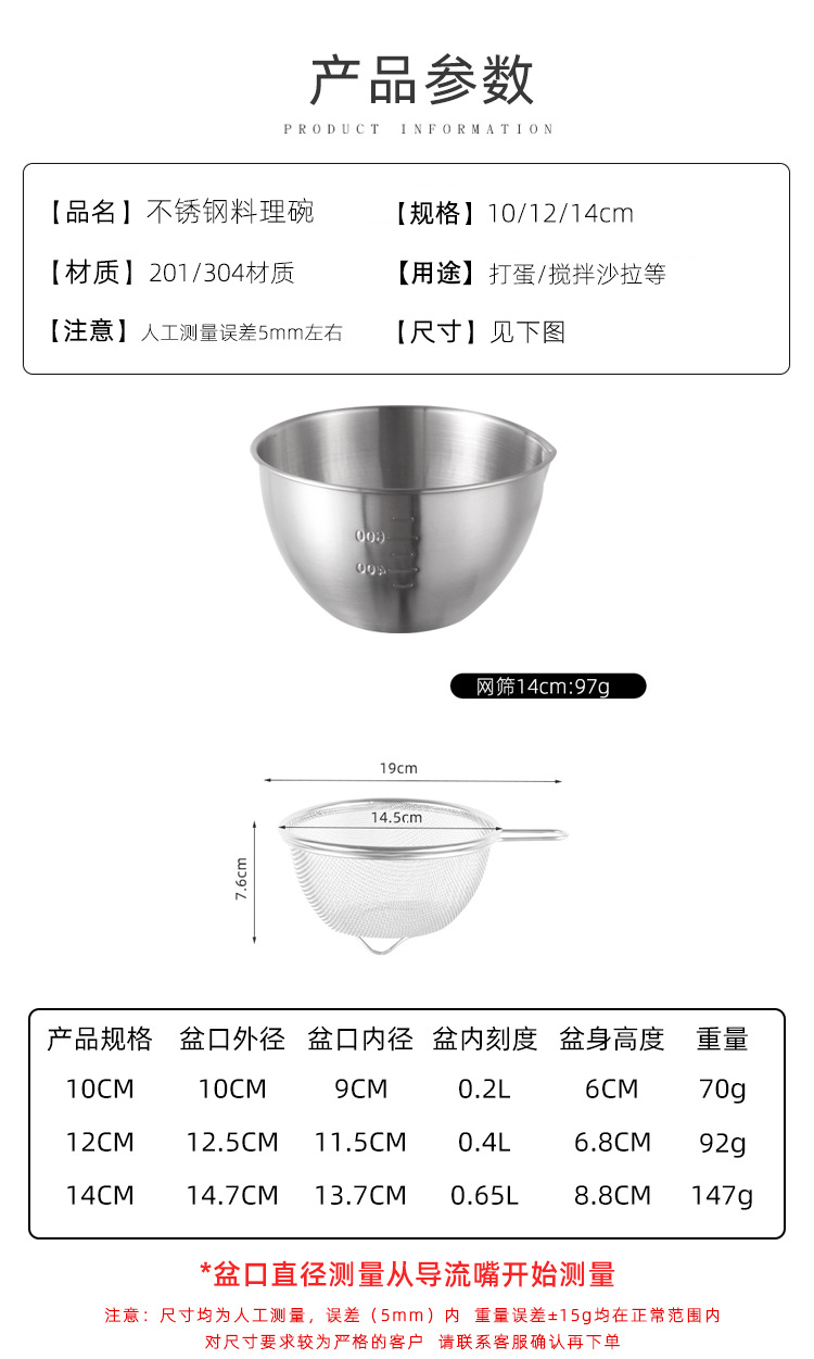304 재료 요리 그릇 큰 직경 14cm/스케일 600ml