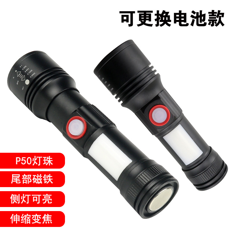 교체 가능한 리튬 배터리 P50 라운드 손전등 TYPE-C 충전 자석 측면 조명 작업 조명 제조 업체 도매
