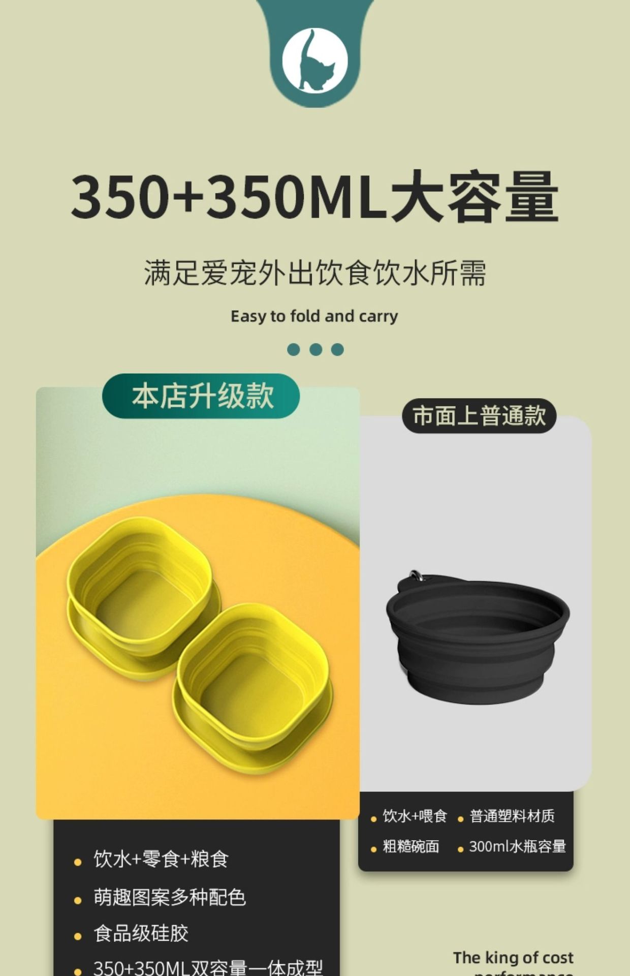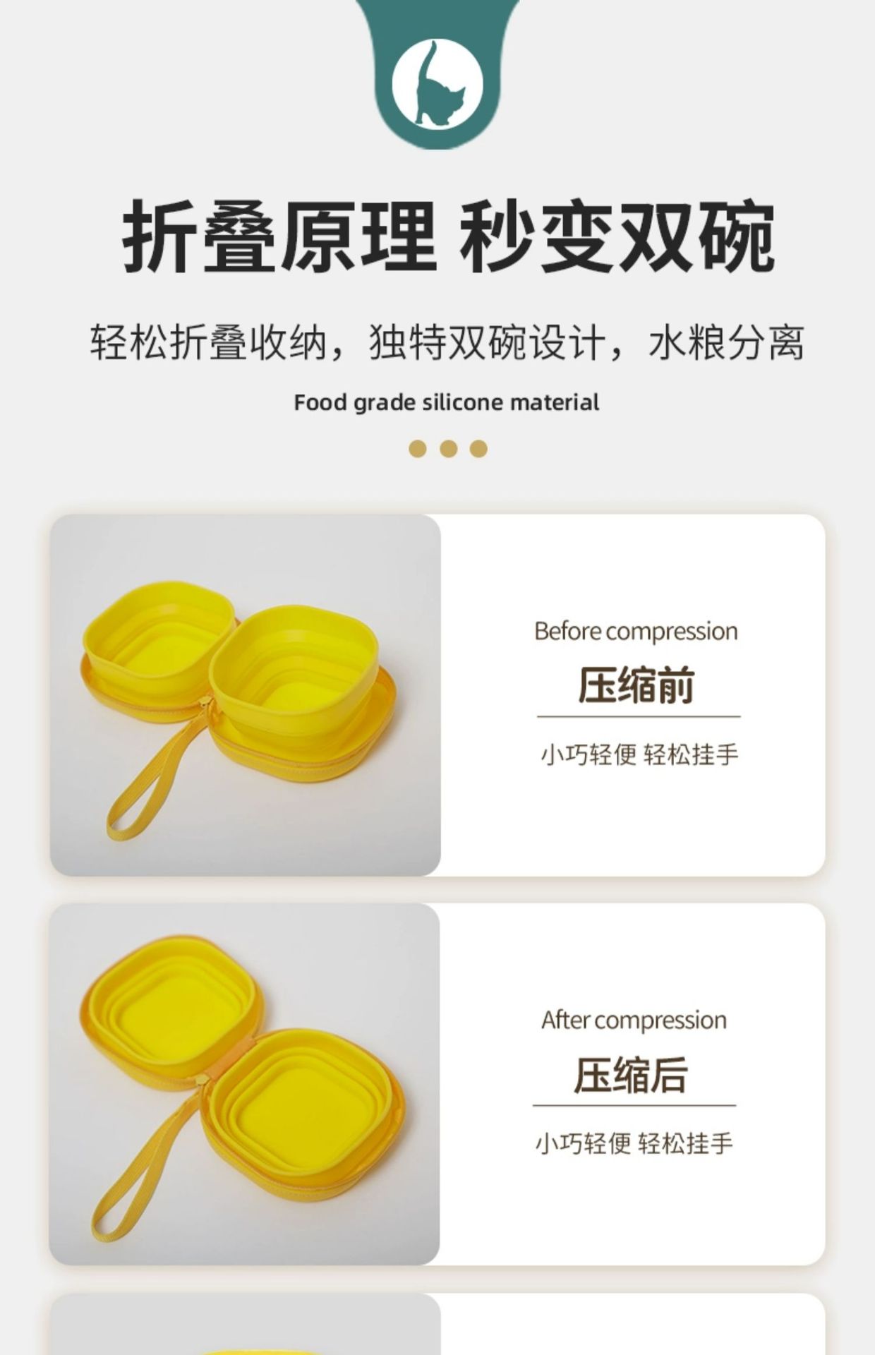 아마존 펫미 휴대용 애완동물 식기, 식품 등급 실리콘 야외 접이식 고양이 사료 그릇, 강아지 물그릇, 야외 휴대용