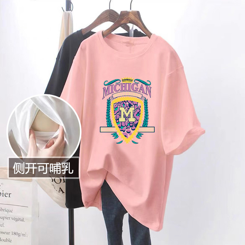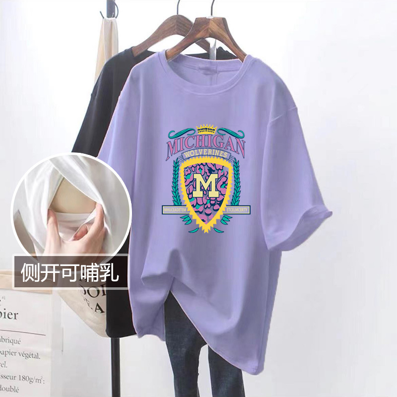 외출용 수유복, 패셔너블한 여름 얇은 수유복, 루즈한 반팔 티셔츠, 산후 수유복, 여름복