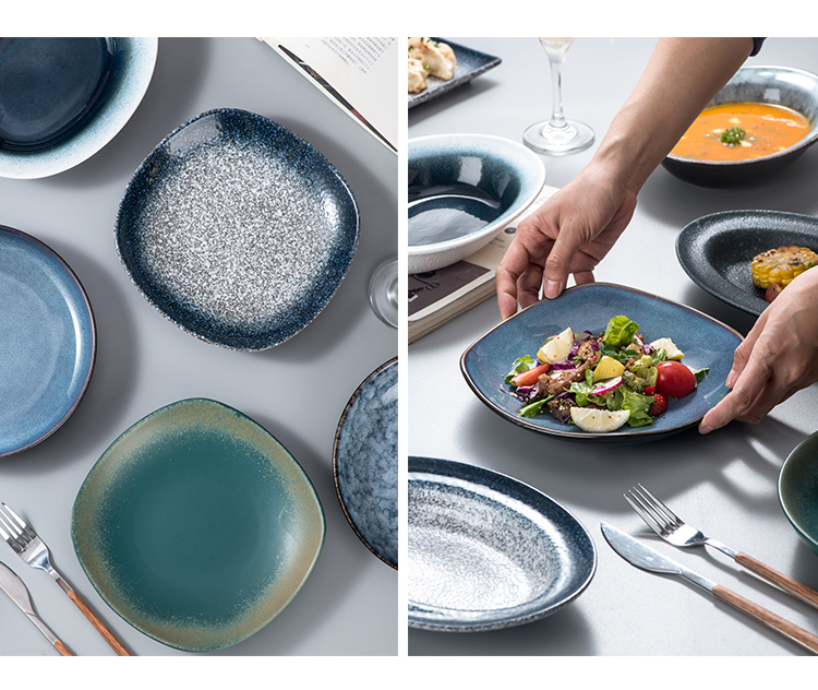 사각 접시 세라믹 가정용 크리에이 티브 보기 좋은 접시 접시 느낌 가벼운 고급 식기 일본식 서양식 깊은 접시 특수 모양의 접시