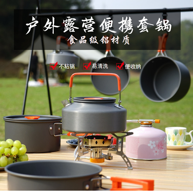 501 아웃도어 세트 냄비, 주전자, 프라이팬, 조리기구, 휴대용 야외 캠핑 식기 세트, 냄비 및 장비 4종 세트