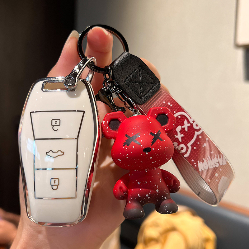 Sihao A-스마트 3 키 [싱글 쉘 화이트] + 레드 폭력 곰 펜던트