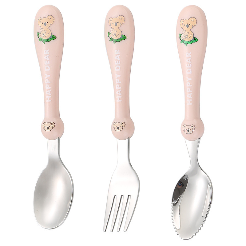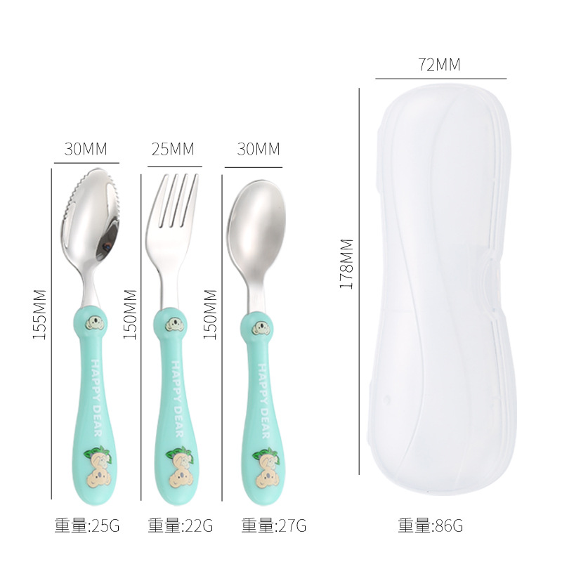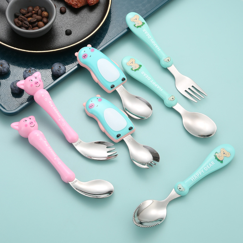 304 스테인레스 스틸 진흙 긁기 숟가락 가정용 만화 숟가락 아기 여행 포크 먹는 숟가락 어린이 식기 세트