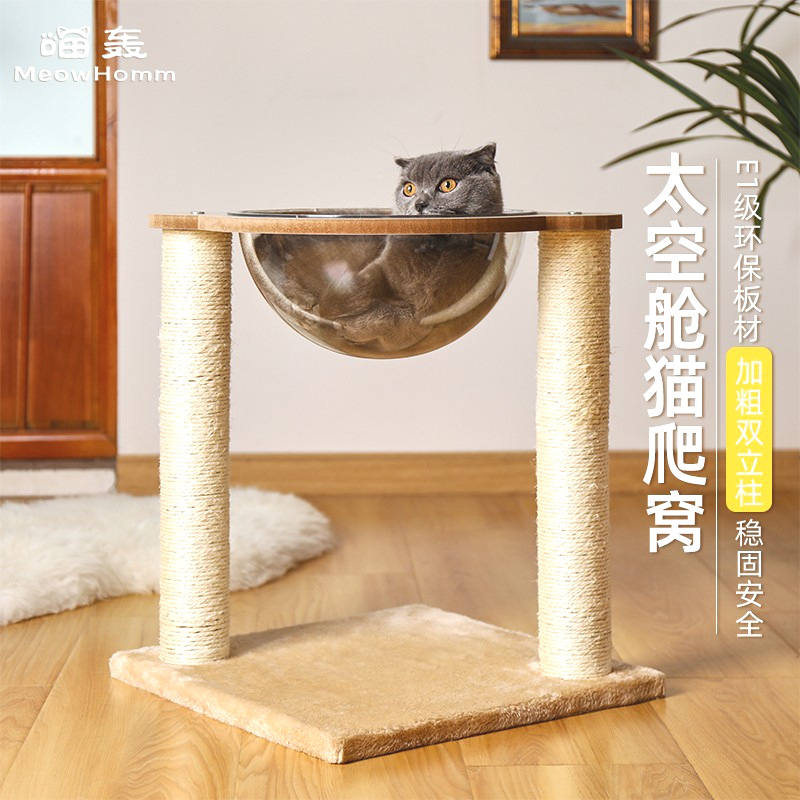고양이 투명 우주 캡슐 고양이 둥지, 사계절 모두 사용 가능한 만능 고양이 둥지, 사이잘 고양이 스크래치 포스트, 일체형 친환경 스크래치 방지 고양이 클라이밍 프레임