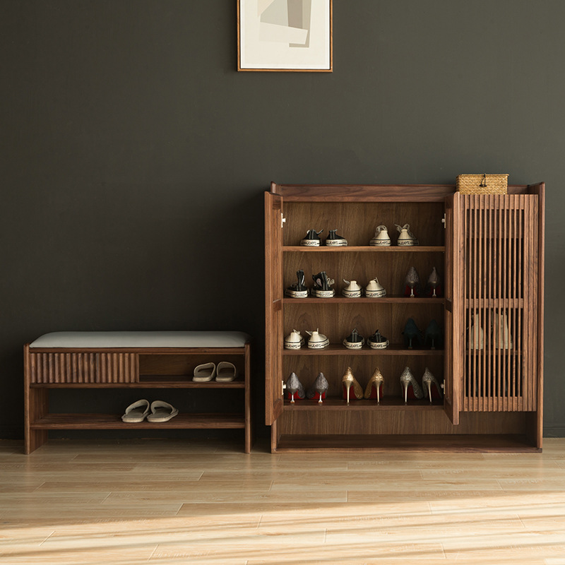 북유럽 현대 블랙 월넛 나무 단단한 나무 입구 그릴 입구 캐비닛 조명 럭셔리 간단한 대용량 카운터 도어 신발 캐비닛