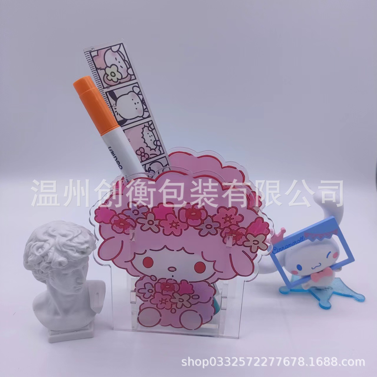 부드러운 소녀 양고기 아크릴 펜 홀더 투명 귀여운 사무실 문구 저장 펜 홀더 재고 도매