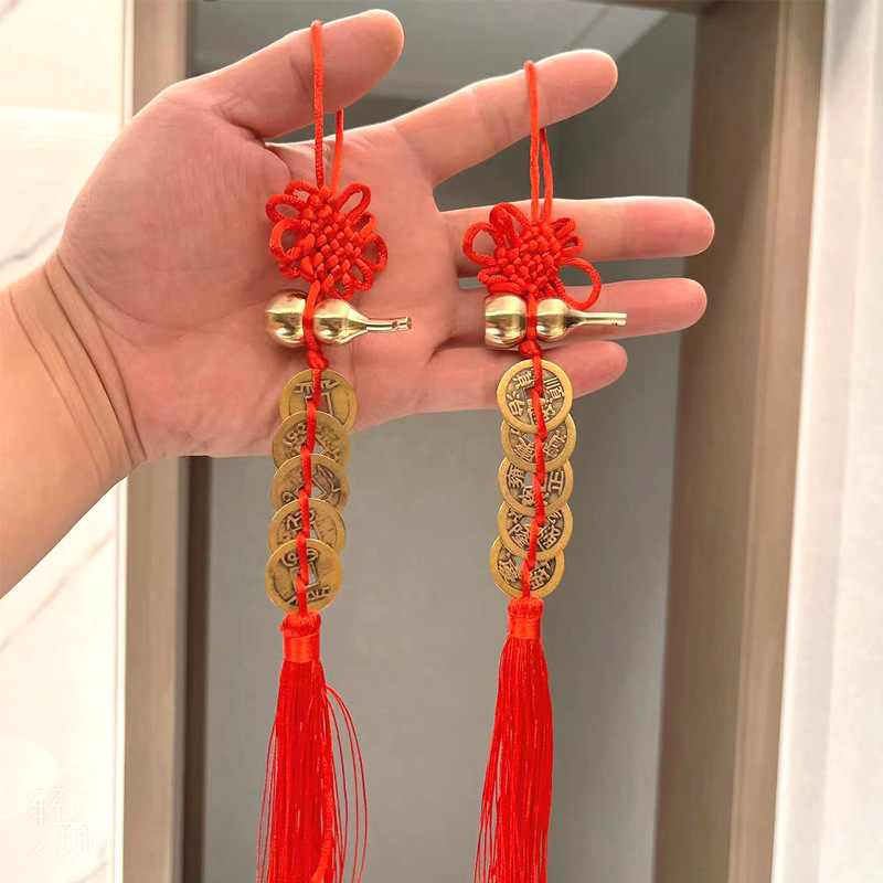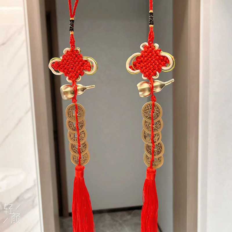 产品尺寸:全红中国结总长约28cm左右;金边的全长约35CM 铜钱直径约23mm;铜葫芦长约40mm