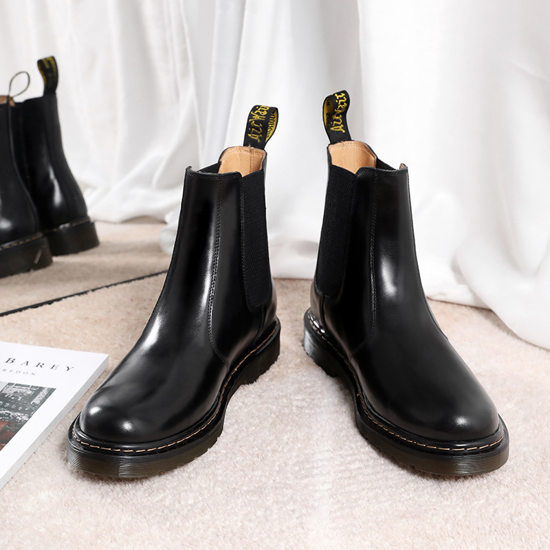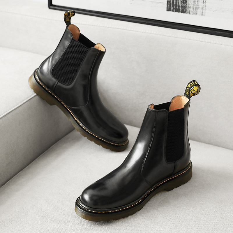 첼시 부츠 남성용 영국 고급 캐주얼 슬립온 가죽 신발 정품 가죽 두꺼운 바닥 라운드 토 하이 탑 마틴 부츠 가을과 겨울