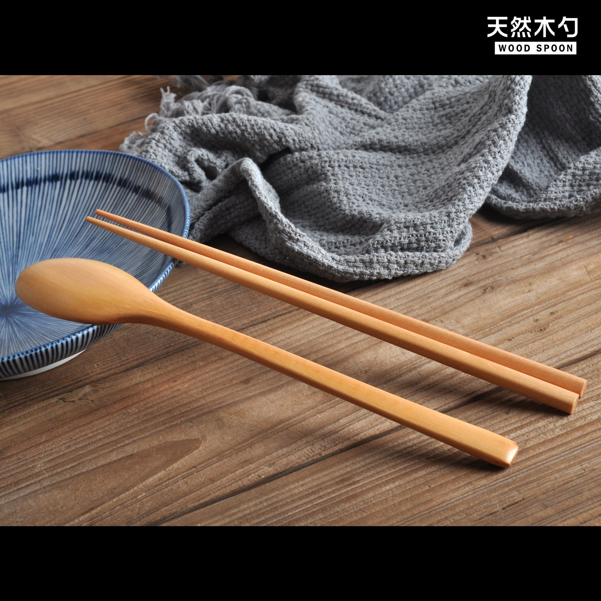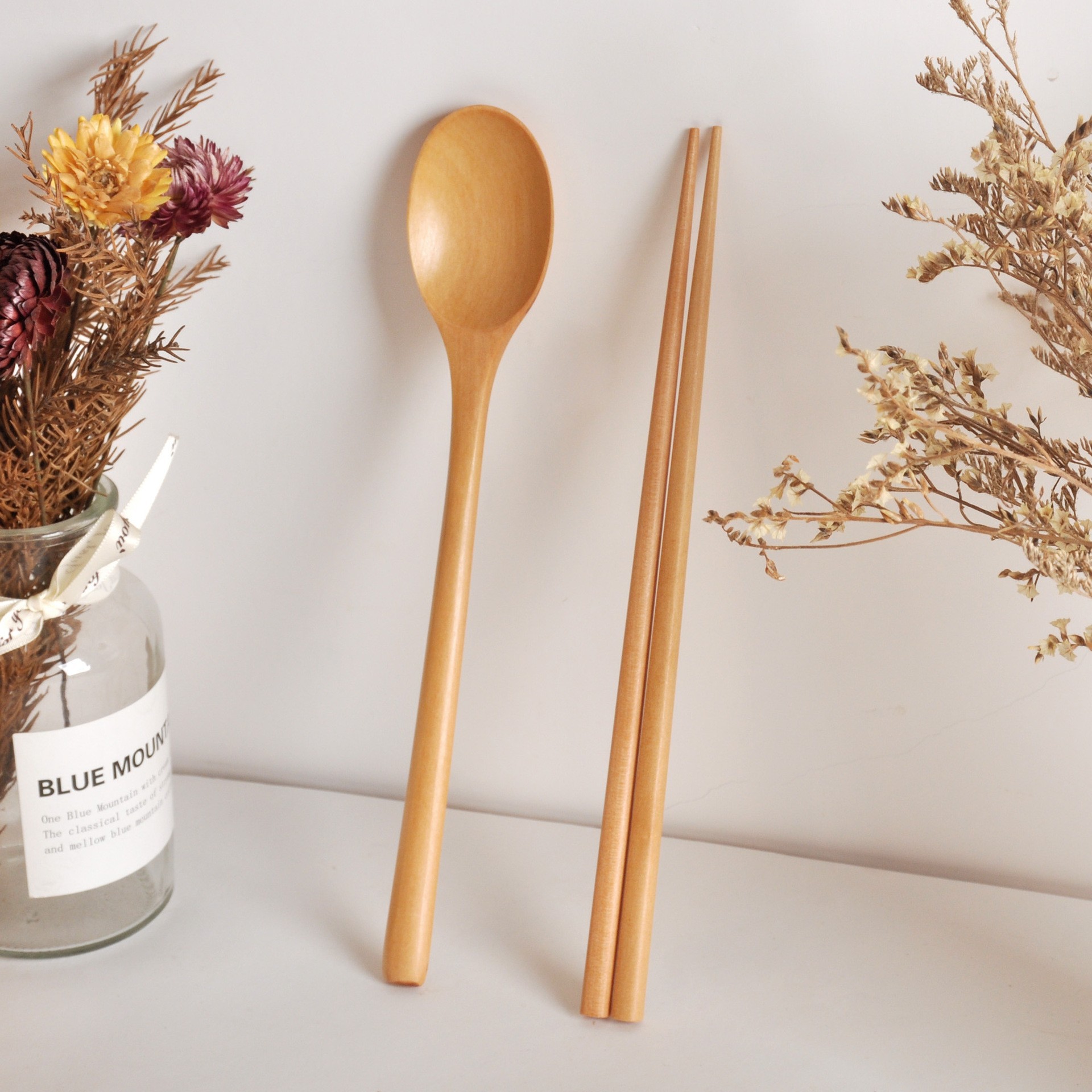일본과 한국 나무 숟가락 젓가락 세트 야외 성인 휴대용 식기 2 조각 긴 손잡이 나무 숟가락 나무 젓가락 세트