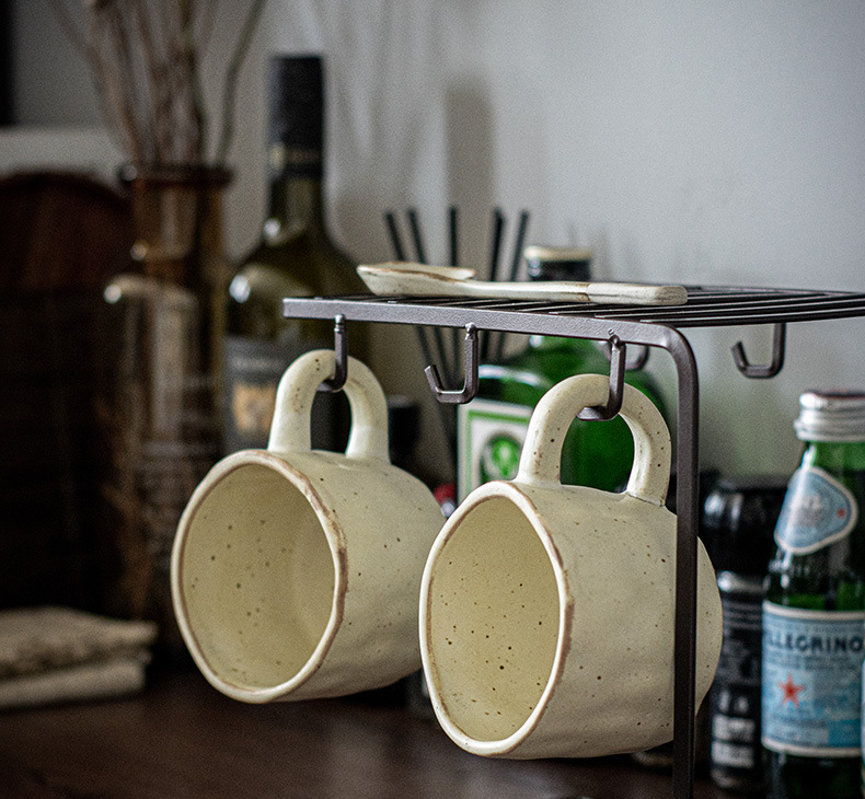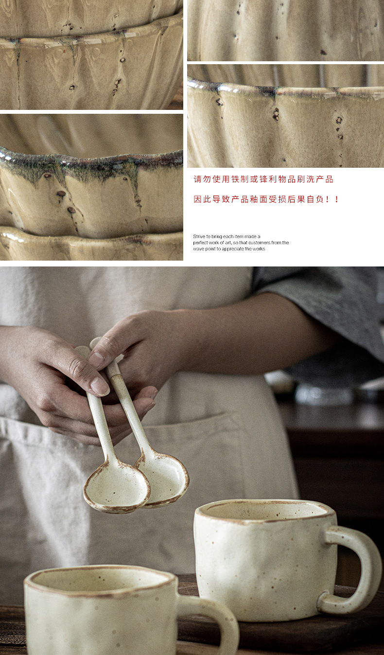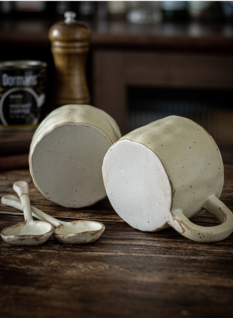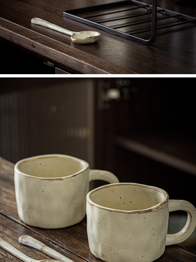 [Huajianji 시리즈 머그컵] 복고풍 스타일 수제 세라믹 커피 컵 물컵 일본식 수프 스푼 믹싱 스푼