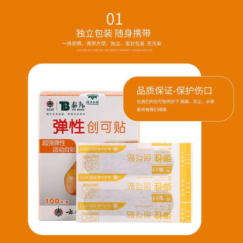 정통 운남 백약 반창고 Taibang 탄성 반창고 내마모성 통기성 독립 포장 100개/상자