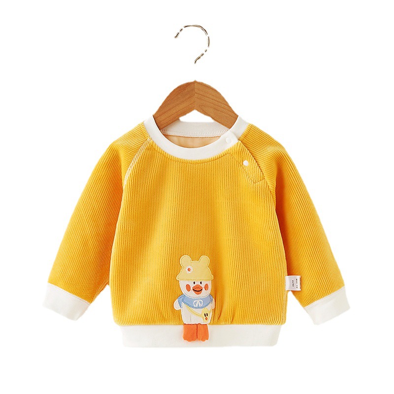 아기 기모 뼈없는 최고 가을과 겨울 코듀로이 가을 옷 소년과 소녀를위한 신생아 두꺼운 옷 아기 열 속옷