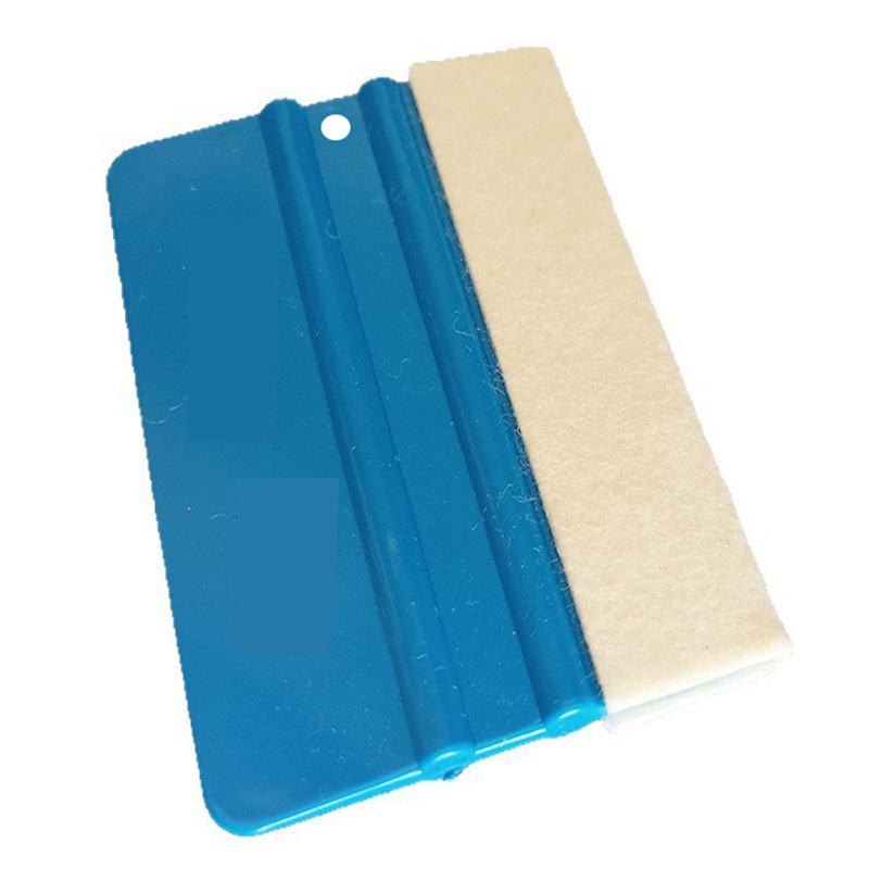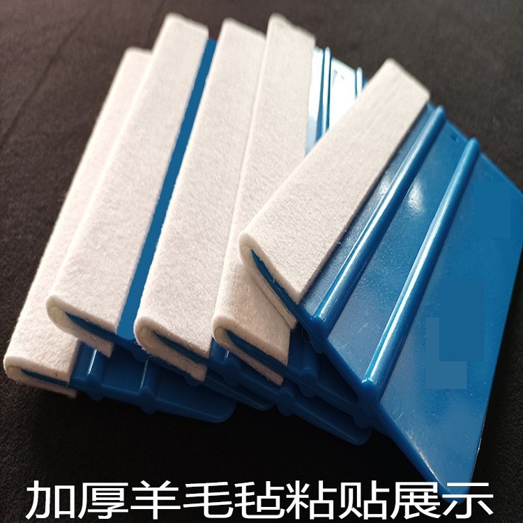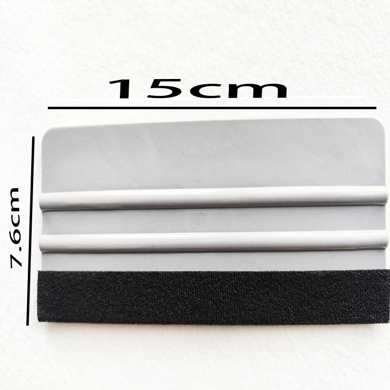 小刮板是7*10CM的,大刮板8*13CM的,优质PA-1的有柔韧性的,不是回收料特硬的。黑色粘毛最薄贴手机膜玻璃膜改色赛边等,天鹅绒 驼绒都是双层加厚的适合汽车改色等,羊毛毡最厚是适合广告贴膜的。鹿皮的适合湿刮用。