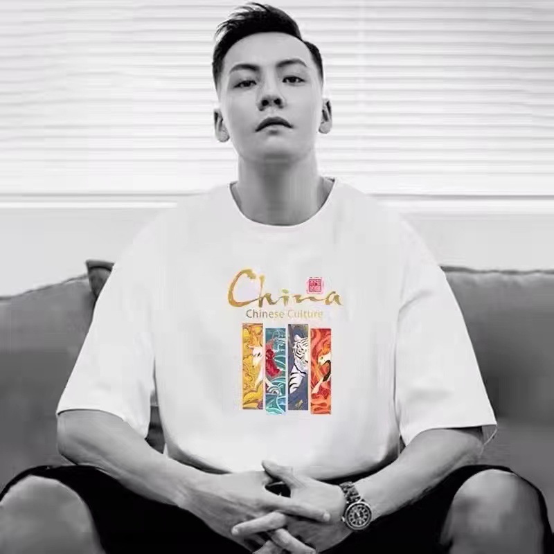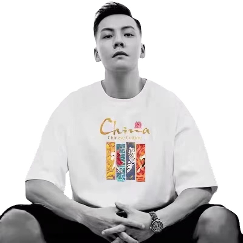 유 웬레 여름 반팔 티셔츠 남성 트렌디 루즈한 반팔 in 트렌디 브랜드 학생 플러스 사이즈 순면 티셔츠 남성 의류