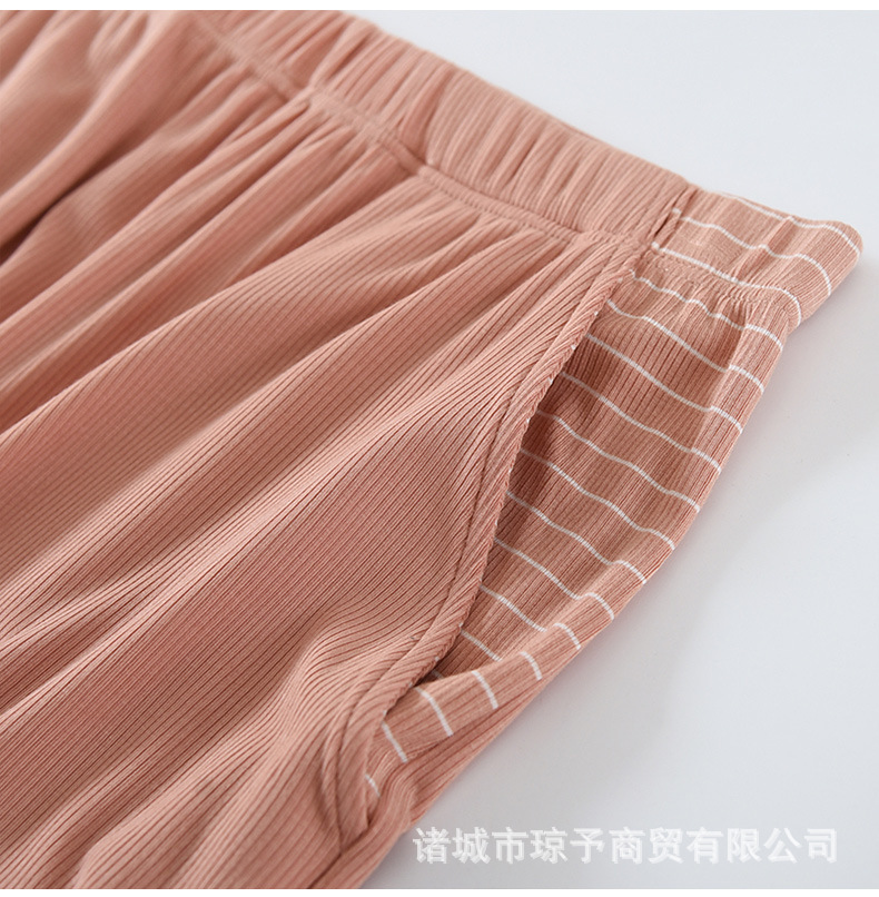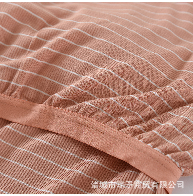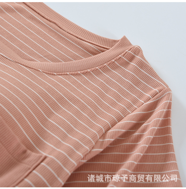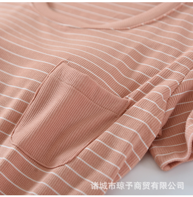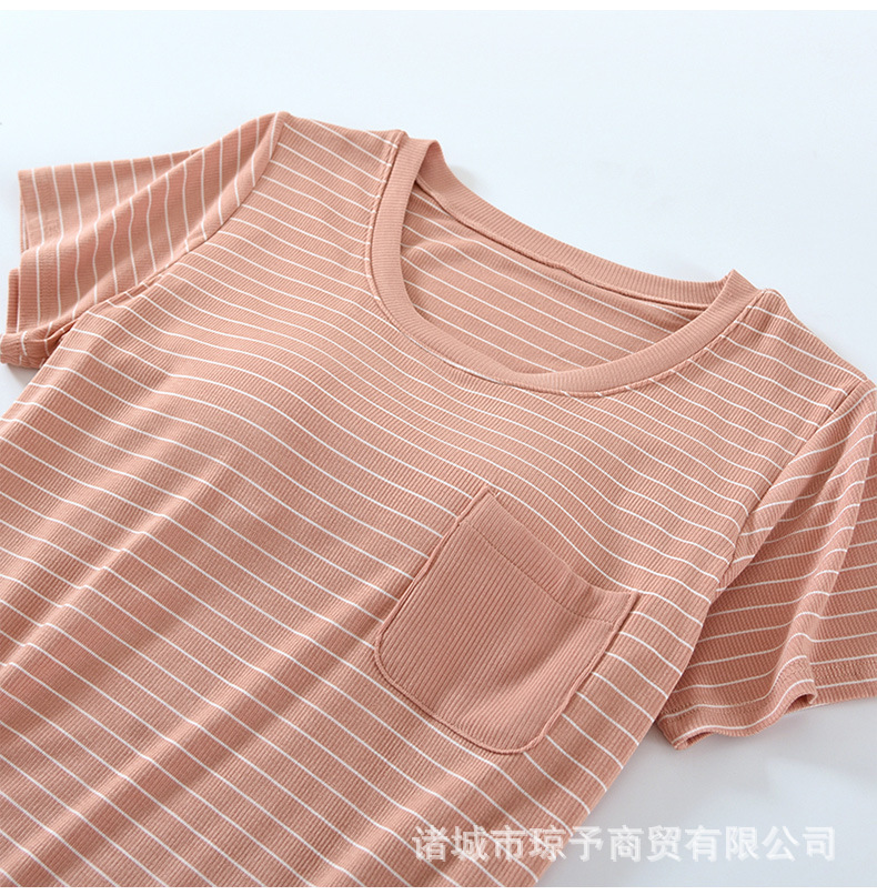 착용 없는 브래지어 가정복 반팔 세트 여성용 여름 라운드 넥 스트라이프 가슴 패드 가정복 반바지 투피스 세트