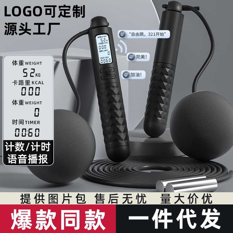 Shangjing 로프 건너 뛰기 지능형 무선 계산 무게 베어링 스틸 와이어 로프 학생 스포츠 용품 큰 공 줄넘기 도매