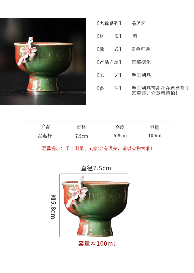랑 홍 마스터 컵 찻잔 빈티지 홈 쿵푸 차 세트 싱글 컵 키 큰 찻잔 차 시음 컵 차 작은 차 그릇