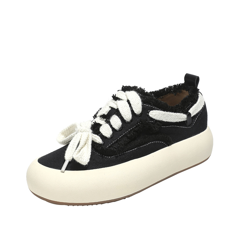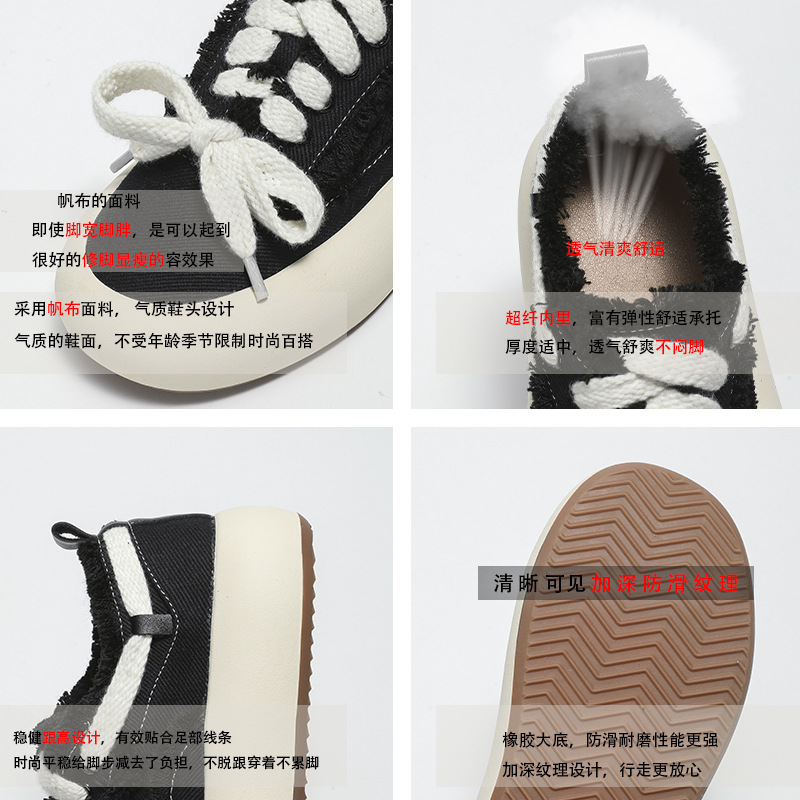 2023 여름 새로운 라운드 발가락 생 가장자리 하프 드래그 두꺼운 바닥 레이스업 발가락 슬립온 모든 매치 캔버스 캐주얼 여성 신발 트렌디