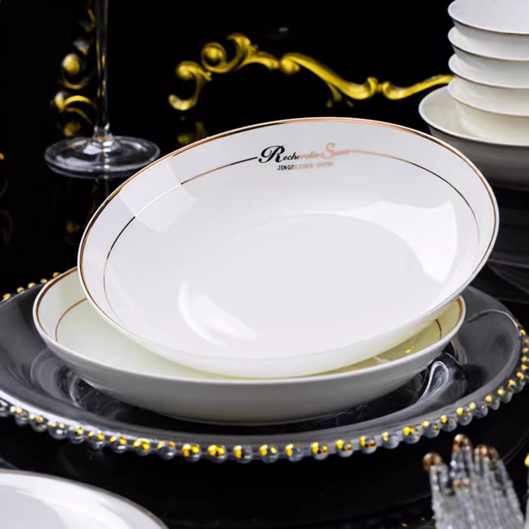 Jingdezhen 세라믹 식기 8 인치 깊은 밥 접시 가정용 유럽식 본 중국 접시 그릇 접시 스테이크 접시 수프 접시
